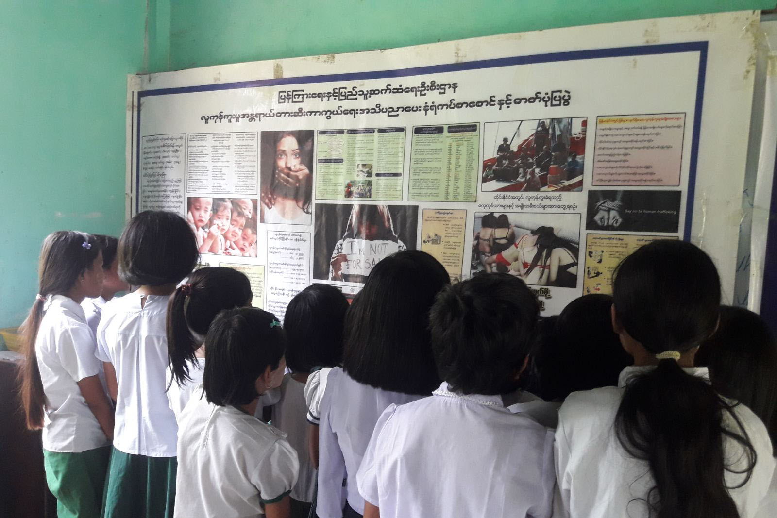 ထို့နောက် လူကုန်ကူးမှုအန္တရာယ်တားဆီးကာကွယ်ရေး၊ လူကုန်ကူးခံရခြင်းအကြောင်း၊ လူကုန်ကူးမှုတိုက်ဖျက်ရေးနှင့် ပြဌာန်းထားသည့်ဥပဒေများ၊ လူငယ်ဆိုင်ရာအသိပညာပေးနံရံကပ်ဘုတ်နှင့် စာအုပ်၊ စာစောင်များပြသရာ ကျောင်းသား၊ ကျောင်းသူများက လေ့လာကြည့်ရှုခဲ့ကြောင်း သိရသည်။