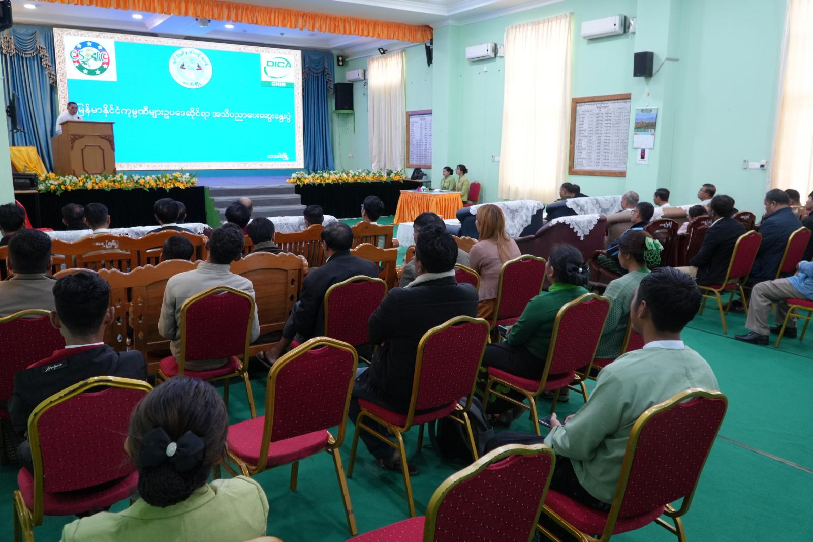 ထို့နောက် ရင်းနှီးမြှုပ်နှံမှုနှင့်ကုမ္ပဏီများညွှန်ကြားမှုဦးစီးဌာနမှ ညွှန်ကြားရေးမှူး ဦးထွန်းတောက်အောင်က မြန်မာနိုင်ငံကုမ္ပဏီများဥပဒေဆိုင်ရာသဘောတရားများ၊ စည်းမျဉ်းစည်းကမ်းများ၊ ကုမ္ပဏီတစ်ခု ဖွဲ့စည်းတည်ထောင်ရာတွင် သိရှိထားသင့်သည့် အခြေခံအကြောင်းအရာများ၊ ကုမ္ပဏီပိုင်ဆိုင်ခြင်းနှင့် စီမံခန့်ခွဲခြင်းဆိုင်ရာသဘောတရားများကို Power Point ဖြင့် အသိပညာပေး ရှင်းလင်းဟောပြောသည်။