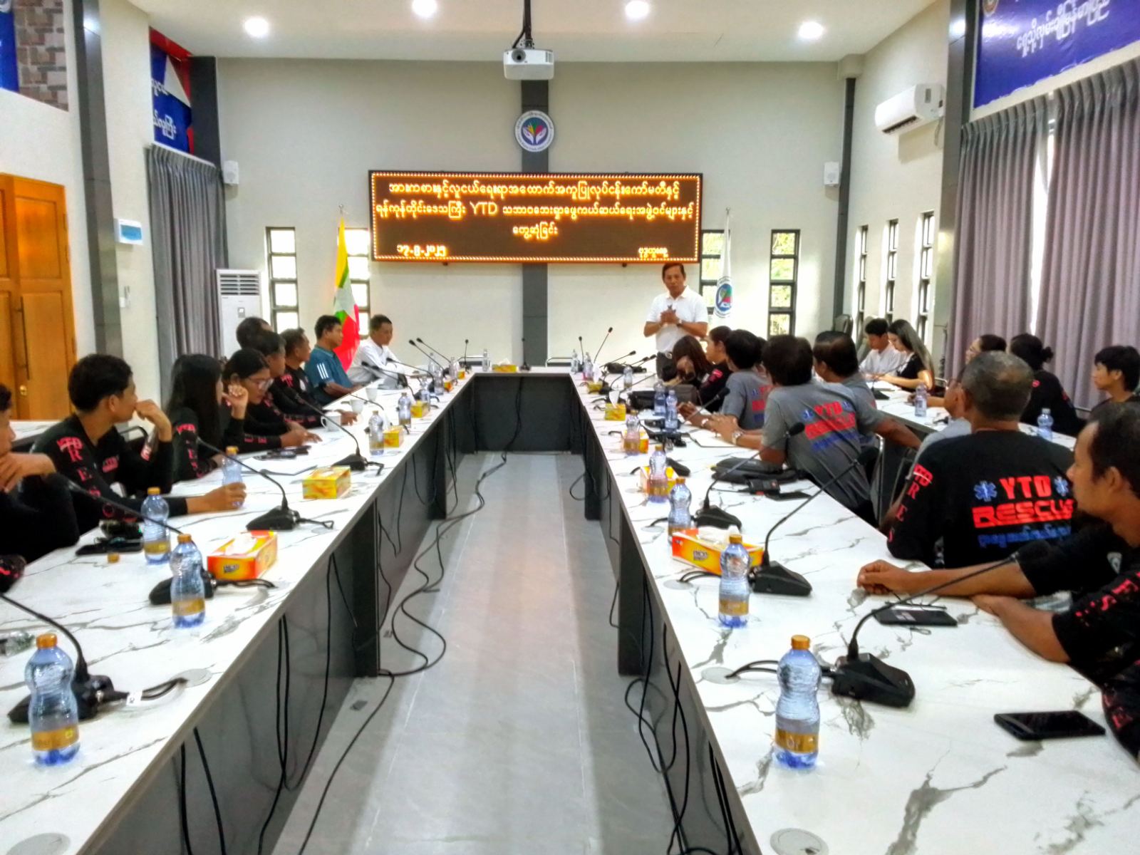 အားကစားနှင့်လူငယ်ရေးရာအထောက်အကူပြုလုပ်ငန်းကော်မတီနှင့် ရန်ကုန်တိုင်းဒေသကြီး၊ သာကေတမြို့နယ် သဘာဝဘေးရှာဖွေကယ်ဆယ်ရေးအဖွဲ့(YTD)တွေ့ဆုံပွဲကို ယမန်နေ့နံနက် ၉ နာရီက သာကေတမြို့နယ်ရှိရန်ကုန်တိုင်းဒေသကြီးလူငယ်စင်တာ အစည်းအဝေးခန်းမတွင် ကျင်းပပြုလုပ်သည်။