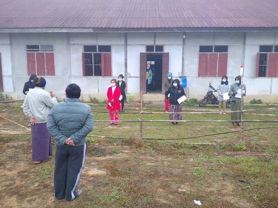 ကချင်ပြည်နယ်၊ မြစ်ကြီးနားခရိုင်၊ တနိုင်းမြို့နယ် ဟူးကောင်းဂင်ဒိုင်မနောကွင်းအတွင်းရှိခန်းမ၌ Facility Quarantine ကန့်သတ်ထားရှိသူများအား ကိုဗစ်-၁၉ရောဂါရှိ/မရှိ ဓာတ်ခွဲနမူနာများ ရယူခြင်းနှင့် ကန့်သတ်(၁၄)ရက်ပြည့်မြောက်သူများအား နေအိမ်သို့ပို့ဆောင်ပေးခြင်းကို ယနေ့ နံနက်(၉) နာရီအချိန်က ကျန်းမာရေးဝန်ထမ်းများနှင့် သက်ဆိုင်ရာတာဝန်ရှိသူများမှ ဆောင်ရွက်ပေးခဲ့ကြောင်း သိရသည်။