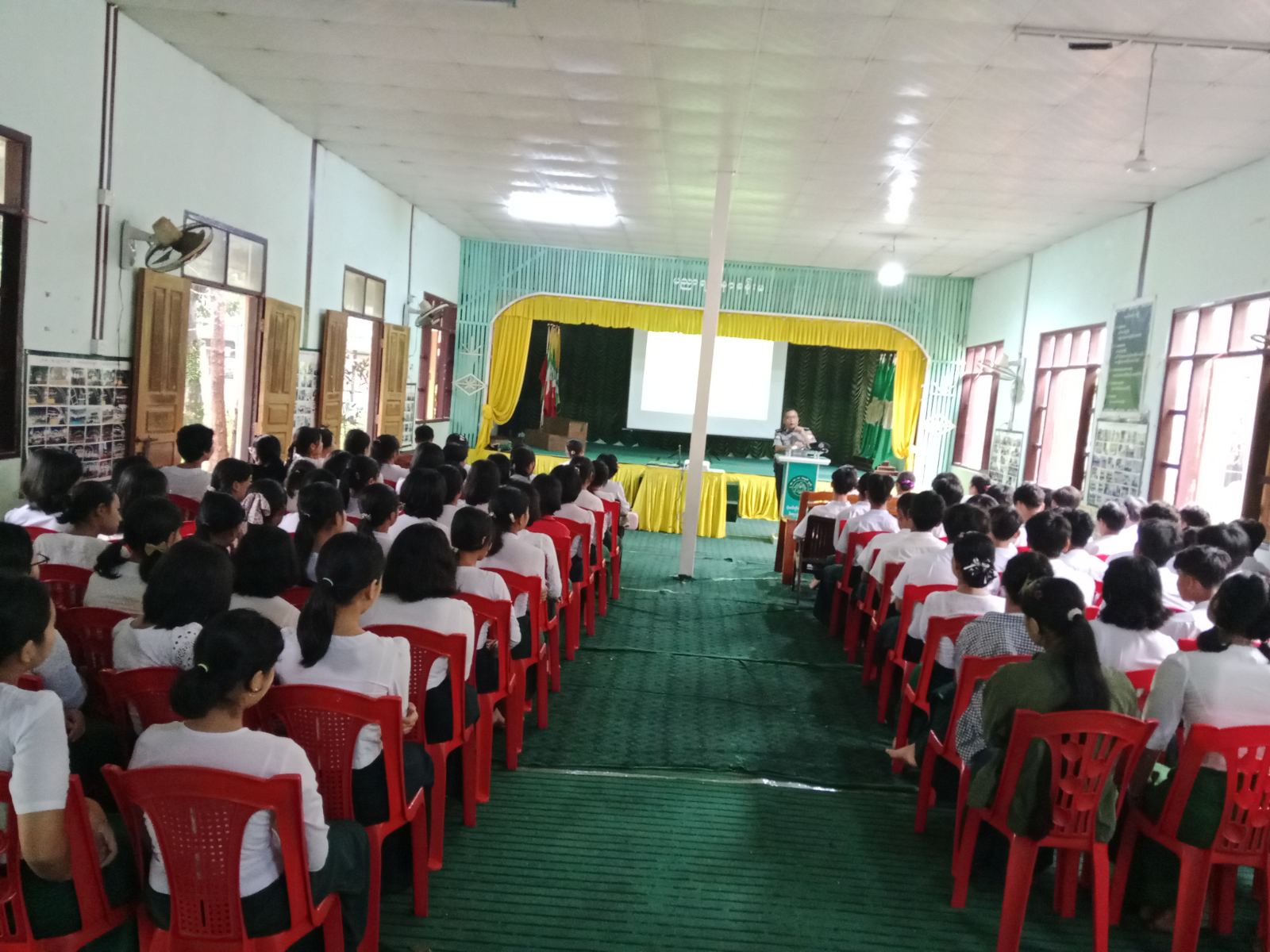 ဟောပြောပွဲတွင် သရက်ချောင်းမြို့မရဲစခန်းမှ စခန်းမှူး သိန်းထိုက်နှင့် ဒုရဲအုပ်ဌေးမောင်တို့က ကျောင်းသားကျောင်းသူများအား ယာဉ်အန္တရာယ်ကင်းရှင်းစေရေး ဆောင်ရန်၊ ရှောင်ရန် အချက်များ၊ ယာဉ်စည်းကမ်း၊ လမ်းစည်းကမ်းများအကြောင်း၊  ချမှတ်ထားသော ဥပဒေများ အကြောင်း၊ ယာဉ်အန္တရာယ်ဖြစ်ပေါ်လာပါက အရေးယူနိုင်သည့် ပြစ်မှု/ပြစ်ဒဏ်များအကြောင်းကို  ရှင်းလင်း​ပြောကြားသည်။