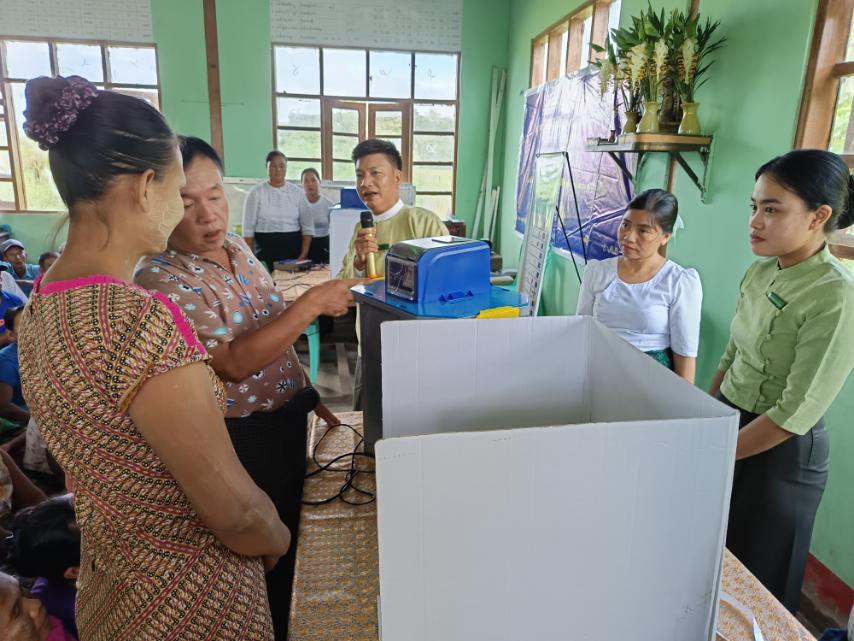 ရန်ကုန်တိုင်းဒေသကြီး၊ သန်လျင်ခရိုင်၊ တံတားမြို့အတွင်းရှိ တူးမြောင်းကျေးရွာတွင် မဲဆန္ဒရှင်ပြည်သူများအား မြန်မာအီလက်ထရောနစ်မဲပေးစက် (MEVM) ဆိုင်ရာ အသိပညာပေးခြင်းနှင့် လက်တွေ့စမ်းသပ်မဲပေးခြင်းကို ယမန်နေ့ နံနက် (၁၀) နာရီက ဆောင်ရွက်ခဲ့ကြောင်း သိရသည်။