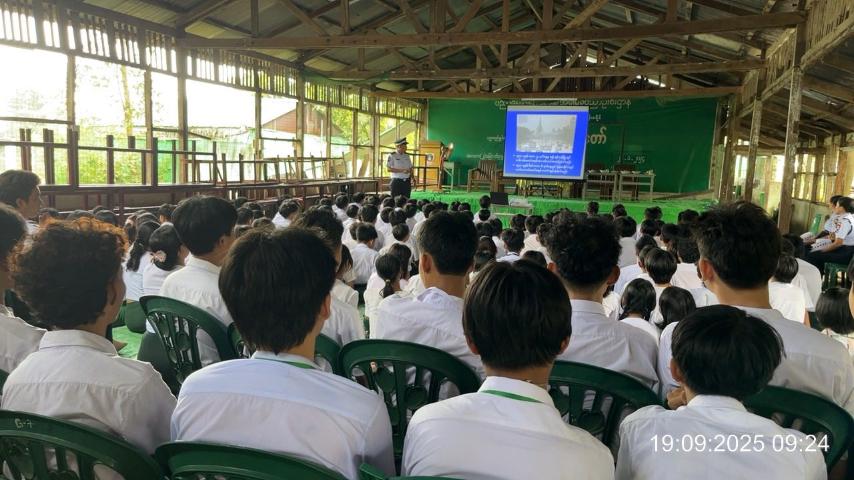 ရန်ကုန်တိုင်းဒေသကြီး၊ မရမ်းကုန်းခရိုင်၊ မြောက်ဥက္ကလာပမြို့နယ်တွင် အမှတ်(၃၅)ယာဥ်ထိန်း တပ်ဖွဲ့စုမှ ကျောင်းသား၊ ကျောင်းသူများ ယာဉ်အန္တရာယ်ကင်းဝေးစေရေး ယာဉ်စည်းကမ်း၊ လမ်းစည်းကမ်းအသိပညာပေးဟောပြောခြင်းကို ယနေ့နံနက် ၉ နာရီအချိန် အမှတ်(၂) အခြေခံပညာအလယ်တန်းကျောင်း ရွှေအင်ကြင်းခန်းမတွင် ပြုလုပ်ခဲ့ကြောင်း သိရသည်။