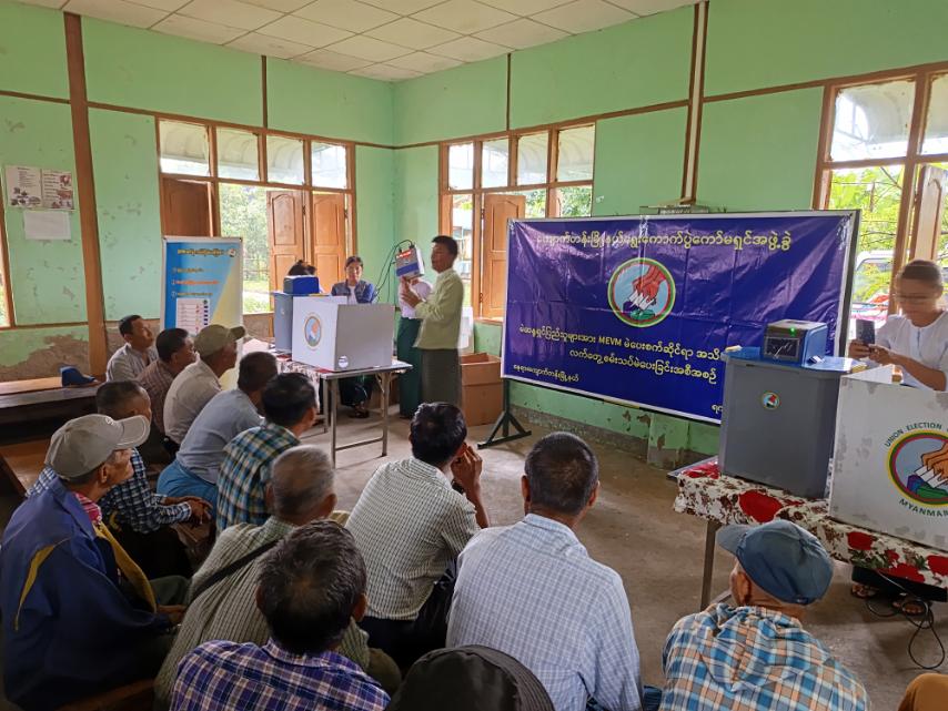 ရှေးဦးစွာ အသိပညာပေးခြင်းလုပ်ငန်းများ ဆောင်ရွက်ရာတွင် မြန်မာအီလက်ထရောနစ်မဲပေးစက် (MEVM) ၏ လုပ်ဆောင်ချက်များနှင့် ကိုင်တွယ်အသုံးပြုခြင်းနည်းလမ်းများ၊ မြန်မာအီလက်ထရောနစ်မဲပေးစက် (MEVM)ကို အသုံးပြုခြင်းဖြင့် မဲပေးရာတွင် မြန်ဆန်၍နားလည်လွယ်ခြင်း၊ ပယ်မဲများမရှိခြင်း၊ အချိန်တိုအတွင်း မဲရလဒ်များရေတွက်နိုင်ခြင်း၊ တိကျသောမဲရလဒ်များရရှိနိုင်ခြင်း၊ ရွေးကောက်ပွဲရလဒ်များကို လျင်မြန်စွာကြေညာနိုင်ခြင်း စသည့်အကျိုးကျေးဇူးများရရှိနိုင်ခြင်းတို့ကို သက်ဆိုင်ရာတာဝန်ရှိသူများက ရှင်းလင်းပြောကြားခဲ့သည်။