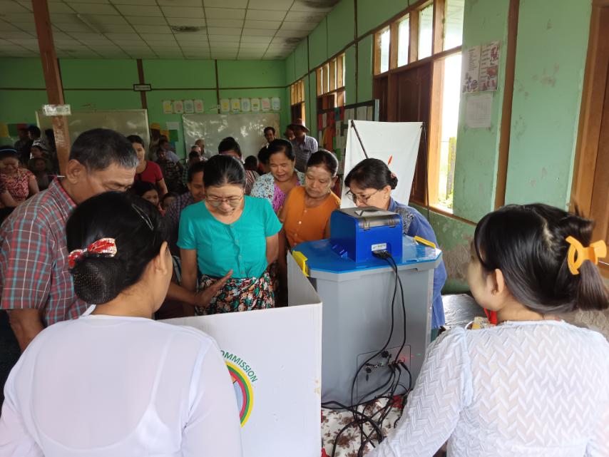 ရန်ကုန်တိုင်းဒေသကြီး၊ သန်လျင်ခရိုင်၊ တံတားမြို့အတွင်းရှိ မရမ်းဘေးကျေးရွာတွင် မဲဆန္ဒရှင်ပြည်သူများအား မြန်မာအီလက်ထရောနစ်မဲပေးစက် (MEVM) ဆိုင်ရာ အသိပညာပေးခြင်းနှင့် လက်တွေ့ စမ်းသပ်မဲပေးခြင်းကို ယမန်နေ့မွန်းလွဲ (၂) နာရီက ဆောင်ရွက်ခဲ့ကြောင်း သိရသည်။