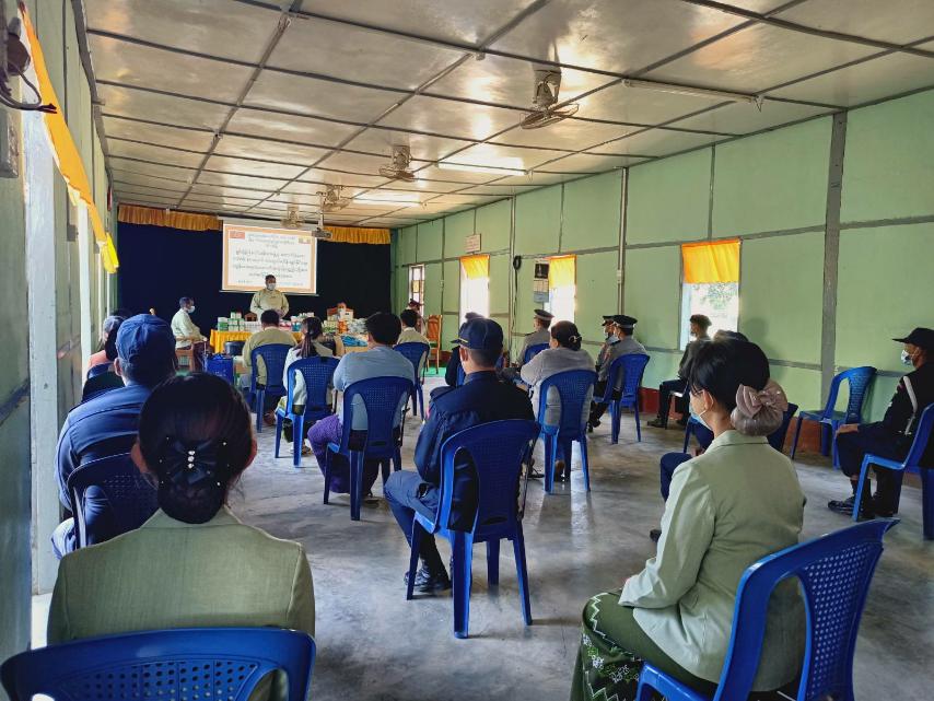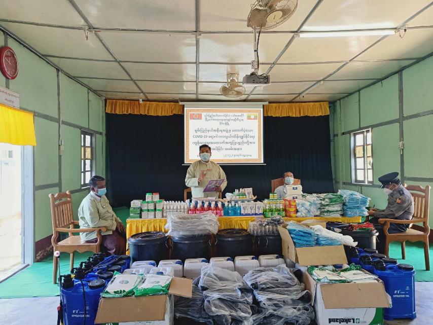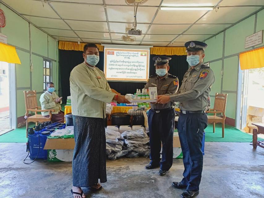 ဖြန့်ဝေပေးသည့်ပစ္စည်းများမှာ Surgical Mask (၄၅၀)ခု၊ Glove တစ်ခါသုံး(၂၄၆)စုံ၊ ရော်ဘာ Glove (၁၂၃)စုံ၊ Examination Glove (၄၅)စုံ၊ လည်ရှည်ဖိနပ် (၃၆)စုံ၊ ပိုးသတ်ဆေးရည် (၆၃)ဂါလန်၊ ဆေးဖျန်းပုံး (၉)ပုံး၊ ဘေစင်(၆)ခု၊ အမှိုက်ပုံးကြီး (၆)ပုံး၊ အကြမ်းစီးဖိနပ် (၁၈)ရံ၊ Hand Spray (၁၅၆)ဘူး၊ ဖိနပ်အစွပ် (၅၁)စုံ၊ PPE(၁၂၃)စုံ၊ Apron ရှေ့ဖုံးခါးစည်း(၁၂၆)ခု၊ Surgical Gown (၃၀)ခု၊ သူနာပြုဆေးပုံး (၃)ပုံး၊ အပူချိန်တိုင်းစက် (၆)ခု၊ Hand Washing Soap Liquid (၁၂၆)ဗူး၊ Vitamic-C (ဗီတာမင်စီ) (၁၈၅၇)ဘူး၊ Enervon-C (အန်နာဗွန်စီ)(၁၈၅၇)လုံး၊ Bleaching Powder (၃၀)စည် တို့ဖြစ်ကြောင်း သိရသည်။