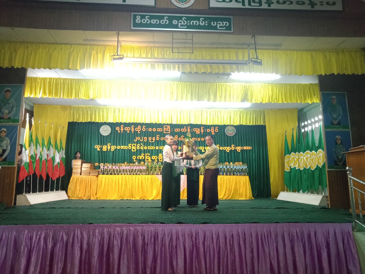 ဆက်လက်၍ ဂုဏ်ထူးရကျောင်းသား၊ ကျောင်းသူများအား တာဝန်ရှိသူအသီးသီးက ဂုဏ်ပြုဆုများ ချီးမြှင့်ခဲ့ပြီး ဆုရရှိသော ကျောင်းသား/သူလေးများ ကျေးဇူးတင်စကားပြန်လည်ပြောကြားခဲ့ပြီး တက်ရောက်လာသူများနှင့် စုပေါင်းမှတ်တမ်းတင်ဓာတ်ပုံရိုက်ကူးခဲ့ကြောင်း သတင်းရရှိသည်။