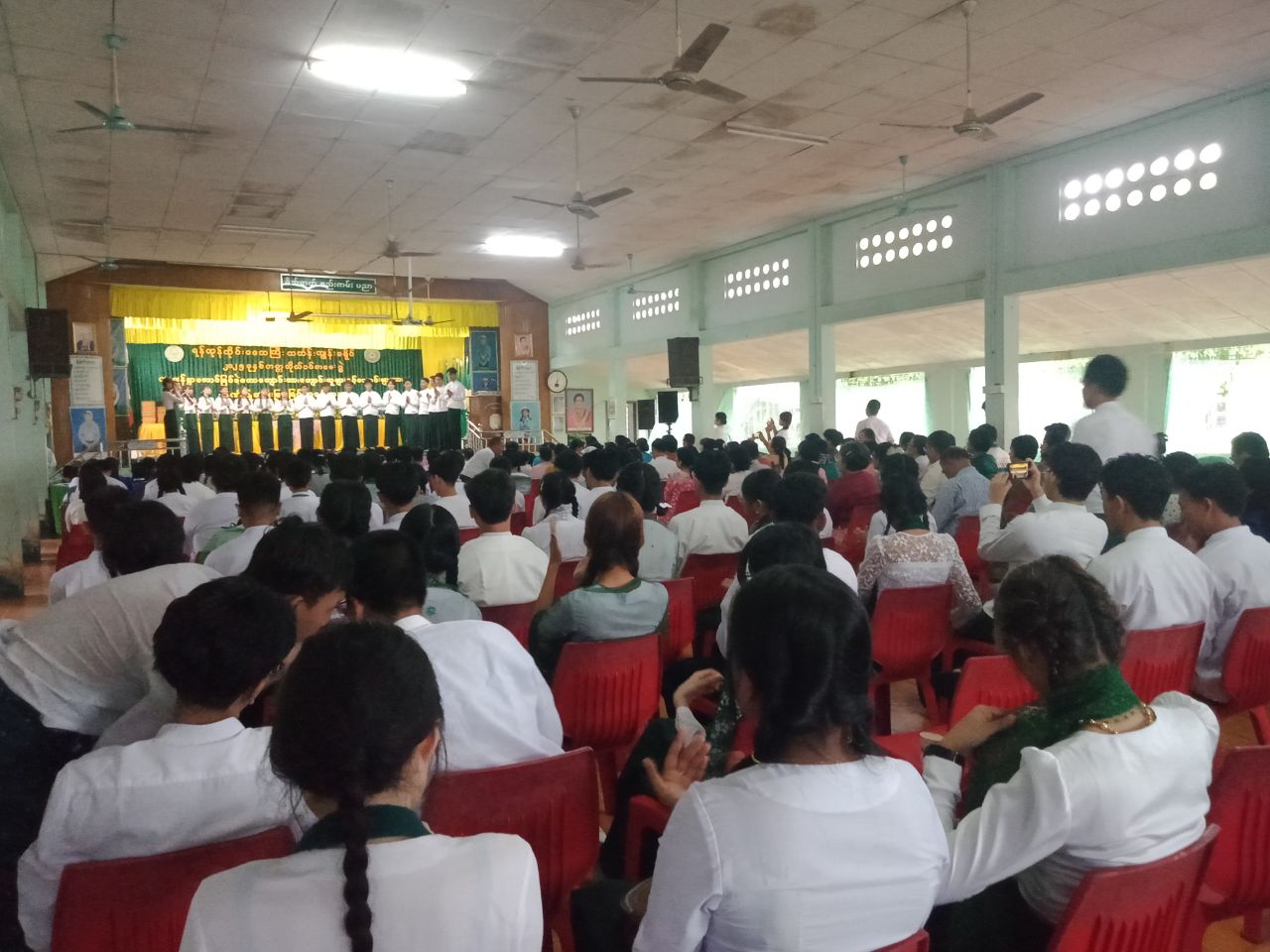 ရှေးဦးစွာ ကျောင်းသား/သူလေးများက မြန်မာ့ကျောင်းသီချင်းဖြင့် သီဆိုဖျော်ဖြေခဲ့ကြပြီး ခရိုင်စီမံခန့်ခွဲရေးနှင့် အုပ်ချုပ်ရေးကော်မတီဥက္ကဋ္ဌ ဦးဇော်မိုးထိုက်က အဖွင့်အမှာစကားပြောကြားခဲ့ပြီး ခရိုင်ပညာရေးမှူး ဒေါ်စုစုခင်က အမှာစကားပြောကြားခဲ့သည်။