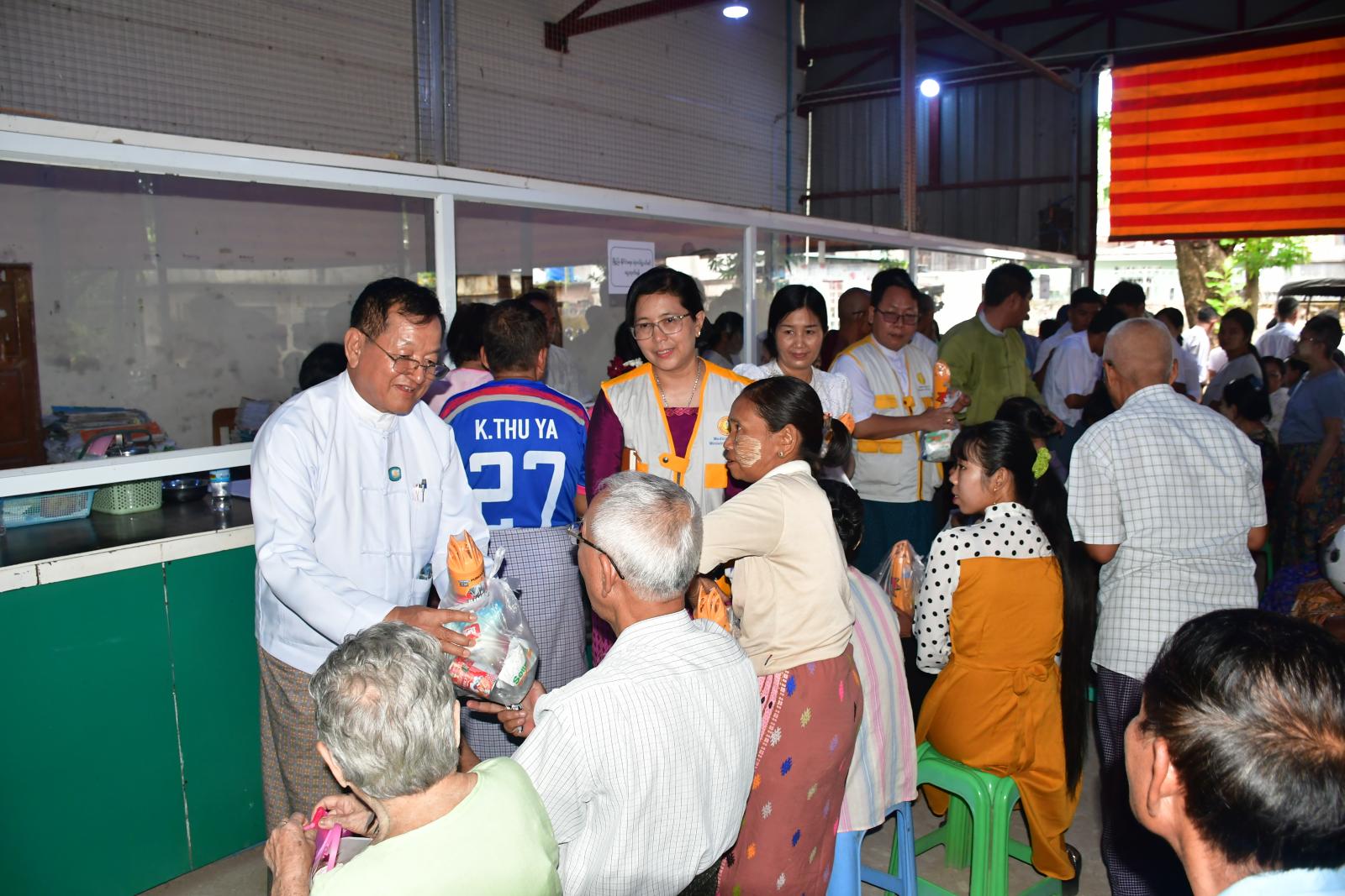 ရှေးဦးစွာ နေပြည်တော်ကောင်စီဝင် ဦးမြင့်စိုးနှင့် တာဝန်ရှိသူများက ပျဉ်းမနားမြို့၊ မြန်မာ့စီးပွားရေးဘဏ်တွင် ပင်စင်လာရောက်ထုတ်ယူသည့် ပင်စင်စားနိုင်ငံ့ဝန်ထမ်းများအား ရင်းရင်းနှီးနှီးတွေ့ဆုံ၍ အားပေးစကားပြောကြားပြီး ငါးသေတ္တာ၊ သကြား၊ အားဖြည့်အချိုရည်နှင့် ခြင်ဆေးဘူးများကို ထောက်ပံ့ပေးအပ်ကြသည်။