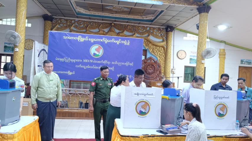 ရန်ကုန်တိုင်းဒေသကြီး၊ ဗိုလ်တထောင်ခရိုင်၊ သာကေတမြို့နယ်၊ ၁၀/တောင်ရပ်ကွက်၊ နှစ်ကျိပ်ရှစ်ဆူဗုဒ္ဓဝိဟာရဗဟိုရ်ဓမ္မာရုံ၌ ယနေ့နံနက်(၉)နာရီခွဲအချိန်မှ (၁၂:၀၀)အချိန်ထိ ရပ်ကွက်နေမဲဆန္ဒရှင်ပြည်သူများအား MEVMမဲပေးစက်ဆိုင်ရာ အသိပညာပေးခြင်းနှင့် လက်တွေစမ်းသပ်မဲပေးခြင်းအစီအစဥ်အခမ်းအနား ကျင်းပပြုလုပ်ခဲ့သည်။