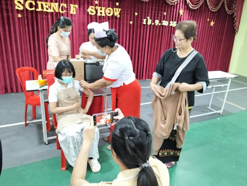 ထိုသို့ ကာကွယ်ဆေးများ ထိုးနှံခြင်းဆောင်ရွက်ရာတွင် မြို့နယ်ပြည်သူ့ ကျန်းမာရေးဦးစီးဌာနမှ ဒေါက်တာသီသီလတ်နှင့် ကျန်းမာရေးဝန်ထမ်းများက ကျောင်းအတွင်းရှိ အသက် (၅) နှစ်မှ (၇) နှစ်အတွင်း ကျောင်းသား/ကျောင်းသူများအား DT (ဆုံဆို့မေးခိုင်ကာကွယ်ဆေး) ထိုးနှံပေးခြင်းအားလည်းကောင်း၊ အသက်(၉)နှစ်မှ(၁၀)နှစ် အတွင်းကျောင်းသူများအား သားအိမ်ခေါင်းကင်ဆာရောဂါကာကွယ်ဆေး (HPV) ထိုးနှံပေးခဲ့ကြပြီး သားအိမ်ခေါင်းကင်ဆာရောဂါနှင့်ပတ်သတ်၍ အသိပညာပေးရှင်းလင်းပြောကြားခြင်းအား တစ်ပြိုင်နက် ဆောင်ရွက်ခဲ့ကြကြောင်း သတင်းရရှိသည်။