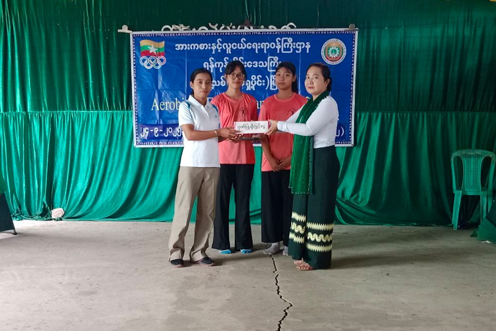 ထို့နောက် သင်တန်းသား/သင်တန်းသူများက Aerobic & Fitness Danceဖြင့် သရုပ်ပြသခဲ့ကြပြီး ဒုတိယမြို့နယ်ပညာရေးမှူး ဒေါ်ခင်ဥမ္မာက သင်တန်းနည်းပြအား ဂုဏ်ပြုဆုငွေချီးမြှင့်ခဲ့ပြီး အားကစားနှင့်ကာယပညာဦးစီးဌာနမှ အားကစားမှူးဒေါ်ခင်ဆွေအေး က သင်တန်းဆင်း လက်မှတ်များ ပေးအပ်ခဲ့သည်။