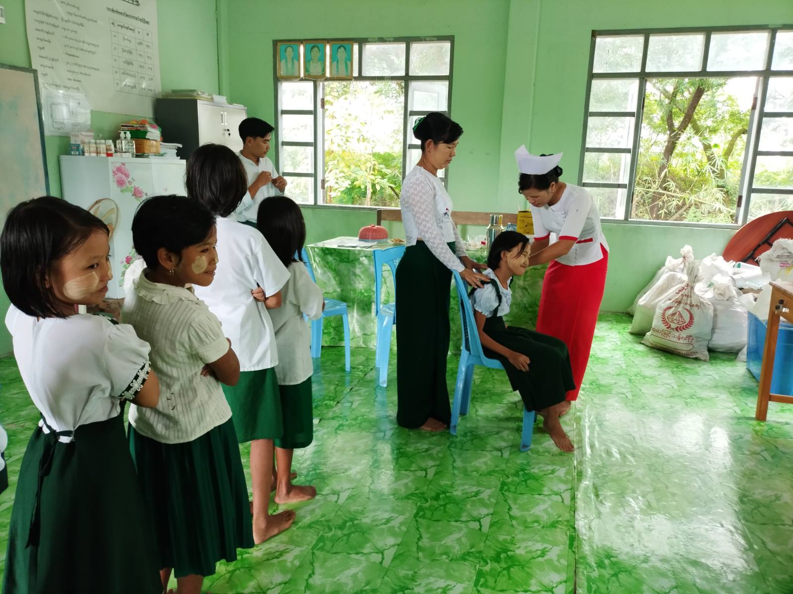 ထိုသို့ဆောင်ရွက်ရာတွင် မြို့နယ်ကျန်းမာရေးဦးစီးဌာနမှူး ဒေါက်တာစံလင်း ဦးဆောင်၍ ကျန်းမာရေးဝန်ထမ်းများက အဖွဲ့များခွဲကာ ဆရာ/ဆရာမများပူးပေါင်း၍ ကျောင်းသား၊ ကျောင်းသူများအား ကာကွယ်ဆေးထိုးနှံပေးလျက် ရှိရာအသက်(၅)နှစ် ပြည့်ပြီး(၇)နှစ် မကျော်သောကျောင်းသား/သူများအားဆုံဆို့၊ မေးခိုင်ကာကွယ်ဆေးထိုးနှံပေးခြင်း ဆောင်ရွက်ခဲ့ပြီးအသက်(၉)နှစ်ပြည့်ပြီး (၁၀)နှစ်မကျော်သောကျောင်းသူများအား (HPV)သားအိမ်ခေါင်း ကင်ဆာရောဂါကာကွယ်ဆေးများကို ကွင်းဆင်းထိုးနှံပေးခဲ့ကြောင်း သိရသည်။