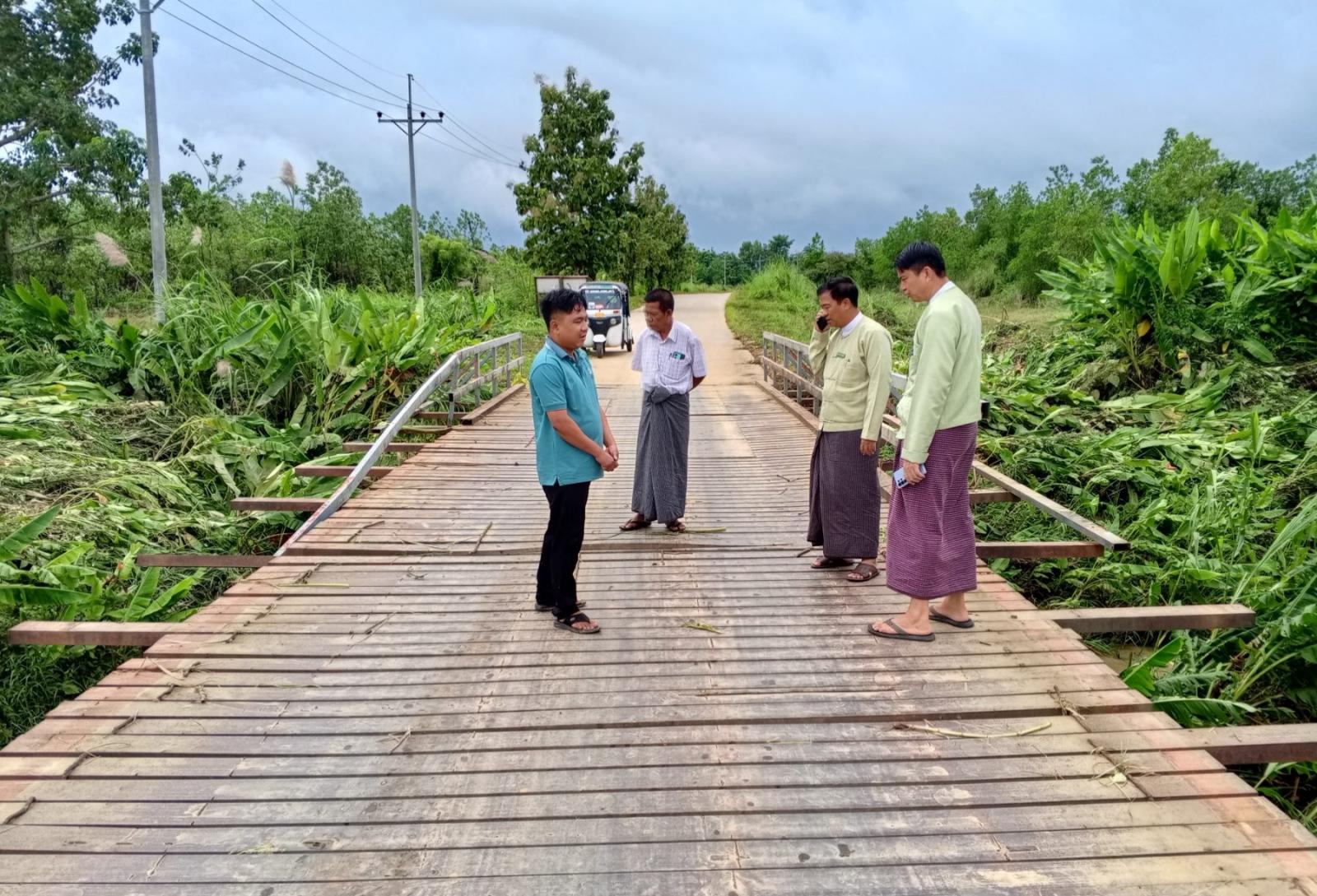 ထို့နောက် ခရိုင်စီမံခန့်ခွဲရေးနှင့် အုပ်ချုပ်ရေးကော်မတီဥက္ကဋ္ဌ ဦးသူအောင်နှင့် အဖွဲ့သည် ချင်းကုန်းကျေးရွာအုပ်စုခရိုင်ချင်းဆက်လမ်း မိုင်တိုင်အမှတ် ၃၅/၄နှင့် မိုင်တိုင်အမှတ် ၃၅/၅ ကြားရှိ သဲဖြူကျေးရွာချောင်းကူးသံဘေလီတံတားတွင် ရေဝင်ရောက်မှုကြောင့် တံတားလက်ရန်းပြုတ်ထွက်မှုနှင့် တံတားကြမ်းခင်းပျက်စီးမှုအခြေအနေနှင့် မိုးသည်းထန်စွာရွာသွန်းမှုကြောင့် သနပ်ချောင်းပိတ်တမံရေပိုလွှဲမှ ရေများကျဆင်းမှုအခြေအနေတို့အား ကွင်းဆင်းကြည့်ရှုစစ်ဆေးပြီး ရေစီးရေလာကောင်းမွန်စေရေး၊ တံတားများ ကြံ့ခိုင်မှုရှိစေရေး သက်ဆိုင်ရာဌာနများအား မှာကြားခဲ့ပြီး လိုအပ်ချက်များကို ပေါင်းစပ်ညှိနှိုင်းဆောင်ရွက်ပေးခဲ့ကြောင်း သိရသည်။
