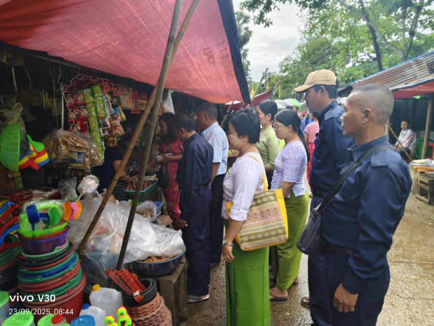 ထိုသို့လိုက်လံစစ်ဆေးရာတွင် မြို့နယ်စားသုံးသူရေးရာဦးစီးဌာနမှ တာဝန်ခံဦးတင်မင်းနှင့် ဝန်ထမ်းများ မြို့နယ် အထွေထွေအုပ်ချုပ်ရေးဦးစီးဌာနမှ ဒုတိယဦးစီးမှူးဒေါ်မြင့်မြင့်စန်း၊ မြို့မဈေးတာဝန်ခံ ဦးအေးသွင်နှင့်တာဝန်ရှိသူများက ဒေသခံပြည်သူလူထုစားသောက်ရေးအတွက်မရှိမဖြစ်လိုအပ်သည့် အခြေခံစားသောက် ကုန်များဖြစ်သော စာအုန်းဆီရောင်းချသောဆိုင်များ၊ ဆန်ဆိုင်များ၊ ကြက်ဥ ဘဲဥအရောင်းဆိုင်များ၊ ကုန်ခြောက်ဆိုင်များတွင် သတ်မှတ်ထားသည့် ဈေးနှုန်းအတိုင်းရောင်းချခြင်း ရှိမရှိနှင့် ဈေးနှုန်းကစားရန်ရည်ရွယ်၍ သိုလှောင်ထားခြင်းမရှိစေရေး အတွက်အသိပညာပေးခြင်းလုပ်ငန်းများကို လည်းဆောင်ရွက်ခဲ့ကြောင်းသိရသည်။