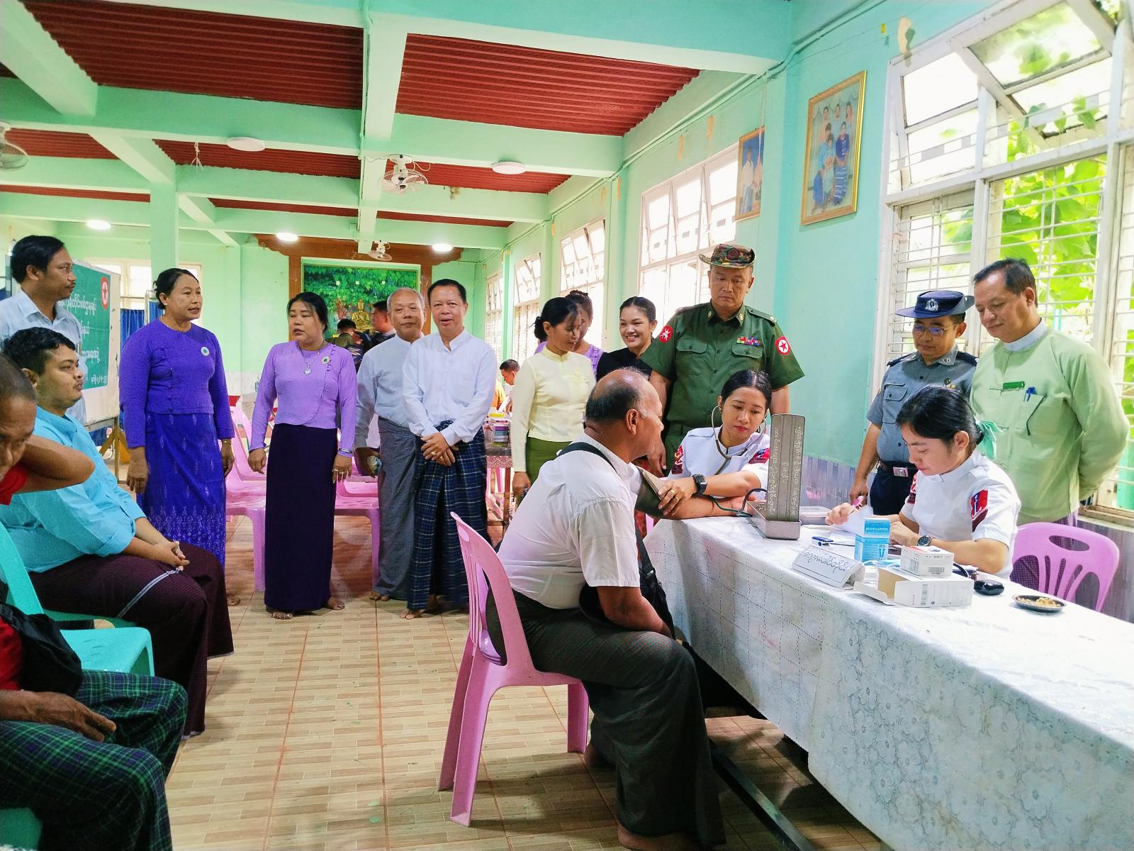 ထိုသို့ ကျန်းမာရေးစောင့်ရှောက်မှုပေးရာတွင် သံဃာတော် (၁၂) ပါး၊ ကျား (၅၇) ဦး၊ မ (၇၆) ဦး၊ စုစုပေါင်း (၁၄၅) ဦး တို့ကို ခွဲစိတ်ကုသမှုဆိုင်ရာ ရောဂါ၊ ကလေးရောဂါ၊ အရိုး၊ အကြောရောဂါ၊ သွားနှင့်ခံတွင်းရောဂါ၊ မျက်စိ၊ နား၊ နှာခေါင်း၊ လည်ချောင်းရောဂါ၊ သားဖွားမီးယပ်ရောဂါ၊ အထွေထွေရောဂါတို့နှင့် ပတ်သက်၍လိုအပ်သည့် ကျန်းမာရေးစောင့် ရှောက်မှု လုပ်ငန်းများဆောင်ရွက်ပေးခဲ့သည်။