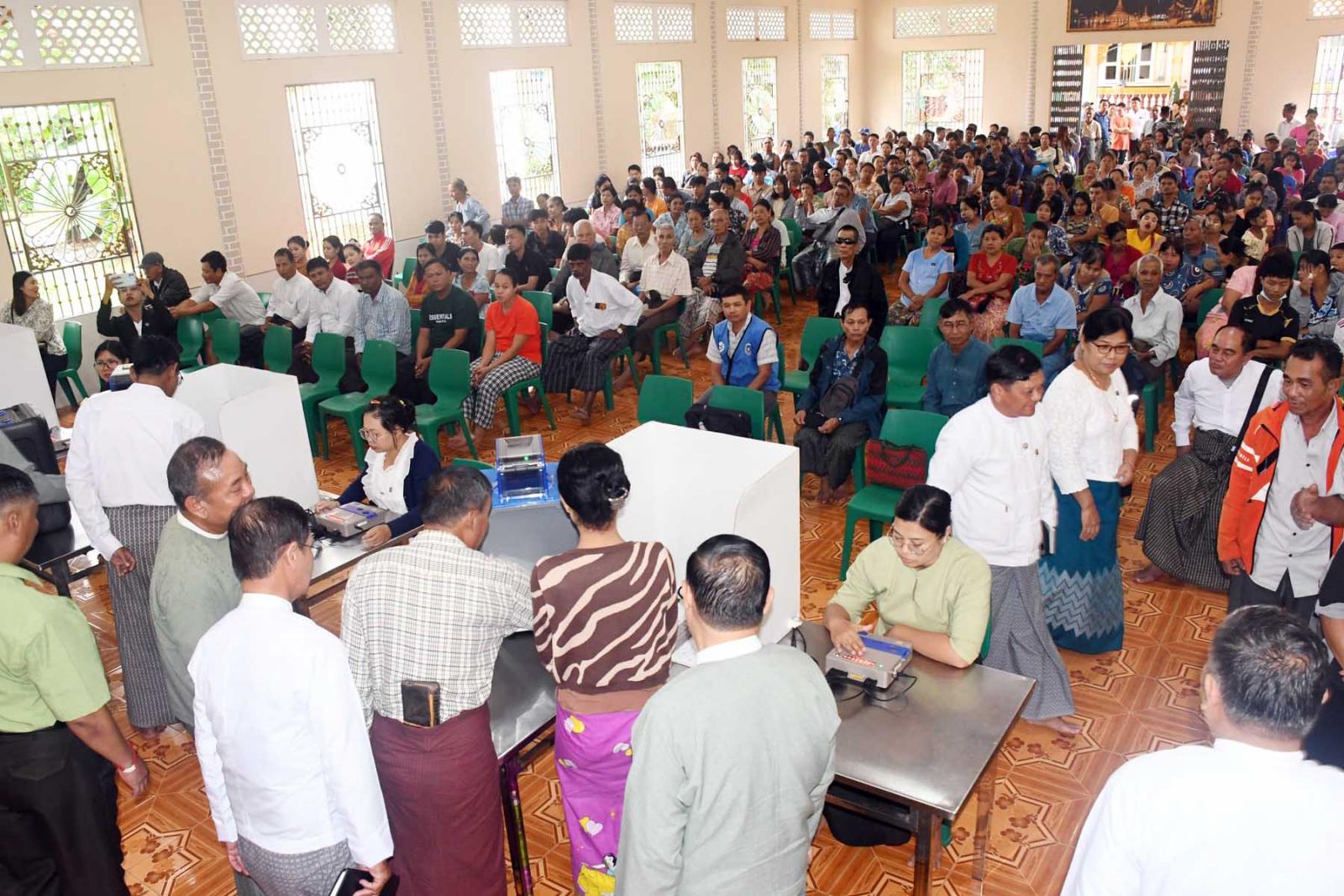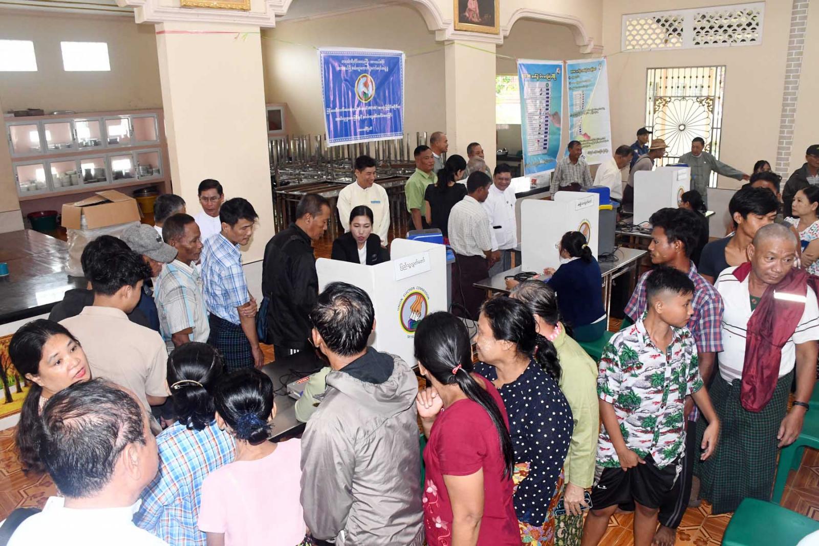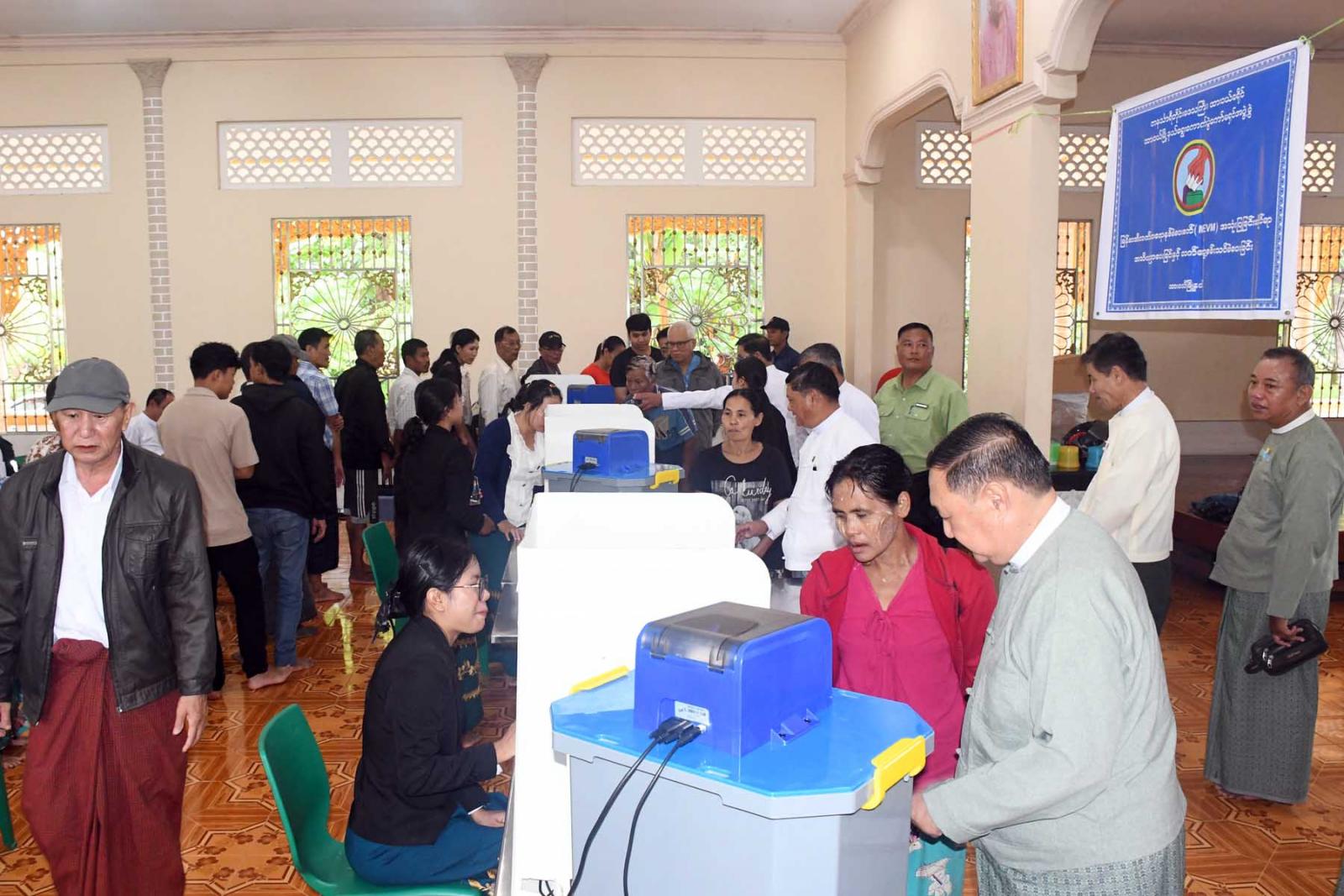 ထို့သို့လက်တွေ့စမ်းသပ်မဲပေးနေမှုကို ပြည်ထောင်စုရွေးကောက်ပွဲကော်မရှင်အဖွဲ့ဝင်ဦးသန်းထွတ်သိန်း (တိုင်းဒေသကြီး တာဝန်ခံ) က ဒေသခံပြည်သူများစမ်းသပ်မဲပေးပုံ၊ ဖြန့်ခွဲပုံ၊ ရွေးကောက်ပွဲနေ့တွင် မဲရုံ၌ မဲပေးစက်တပ်ဆင်ခင်းကျင်းပုံ၊ မဲရလဒ်ရေတွက်ပုံ၊ နည်းဥပဒေပါအတိုင်း မဲရလဒ်စာရင်းပြုစုပုံ၊ မဲပေးစက် ကိုင်တွယ်ပုံ၊ လက်တွေ့စမ်းသပ် သရုပ်ပြမဲပေးပုံ၊ မဲရုံခင်းကျင်းပုံစသည့်တို့ကို ကြည့်ရှုအားပေးးရာ သက်ဆိုင်ရာရွေးကောက်ပွဲ ကော်မရှင်အဖွဲ့ခွဲ တာဝန်ရှိသူများက လိုက်လံ ရှင်းလင်းပြသသည်။
