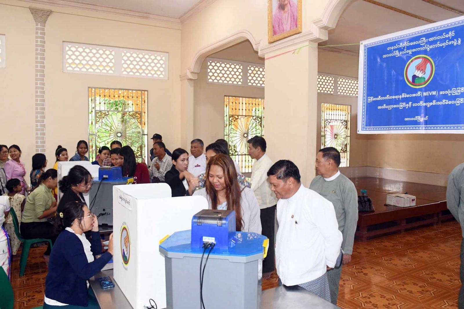 တနင်္သာရီတိုင်းဒေသကြီးထားဝယ်ခရိုင်၊ ထားဝယ်မြို့နယ် ရွေးကောက်ပွဲကော်မရှင်အဖွဲ့ခွဲ က မြန်မာအီလက် ထရောနစ်မဲပေးစက် (MEVM) အသုံးပြုခြင်းဆိုင်ရာ အသိပညာပေးခြင်းနှင့် လက်တွေ့စမ်းသပ်မဲပေးနေမှုကို စက်တင်ဘာ ၂၄ ရက် မွန်းလွဲပိုင်း က ထားဝယ်မြို့ ဆန်းချီဘုန်းတော်ကြီးကျောင်း၌ ကျင်းပသည်။