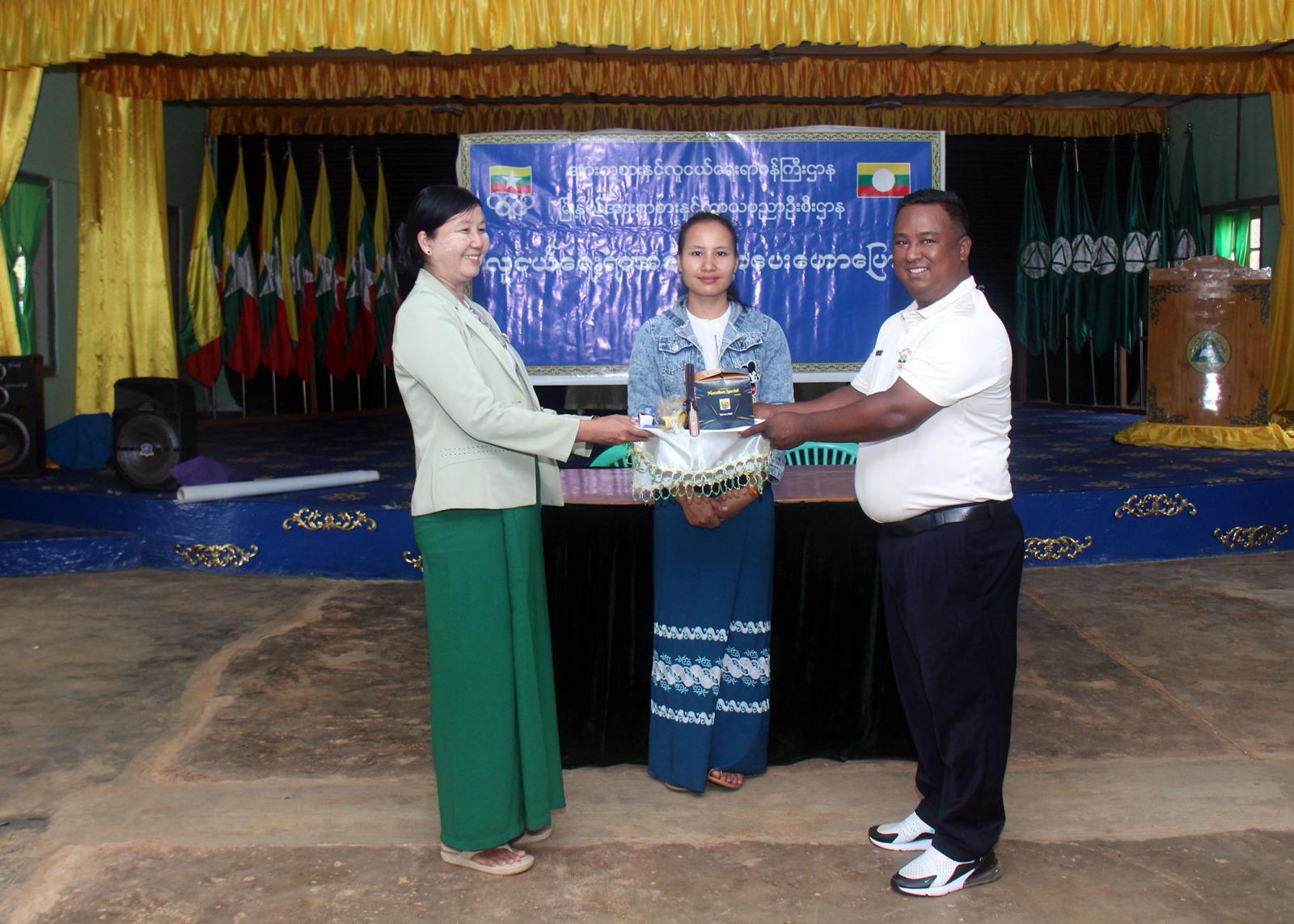 ထို့နောက် မြို့နယ်အားကစားနှင့်ကာယပညာဦးစီးဌာနမှ မြို့နယ်အားကစားမှူး ဦးအောင်ကိုကိုက လူငယ်နှင့်ပညာရေး၊ လူငယ်နှင့်ကိုယ်ကျင့်တရားခေါင်းစဉ်ဖြင့် အသိပညာပေးဟောပြော၍ ကျောင်းသား၊ ကျောင်းသူများအတွက် အားကစားပစ္စည်းများ ပေးအပ်ခဲ့ရာ ကျောင်းအုပ်ဆရာမကြီး ဒေါ်မွန်မွန်မြင့်က လက်ခံရယူခဲ့သည်။