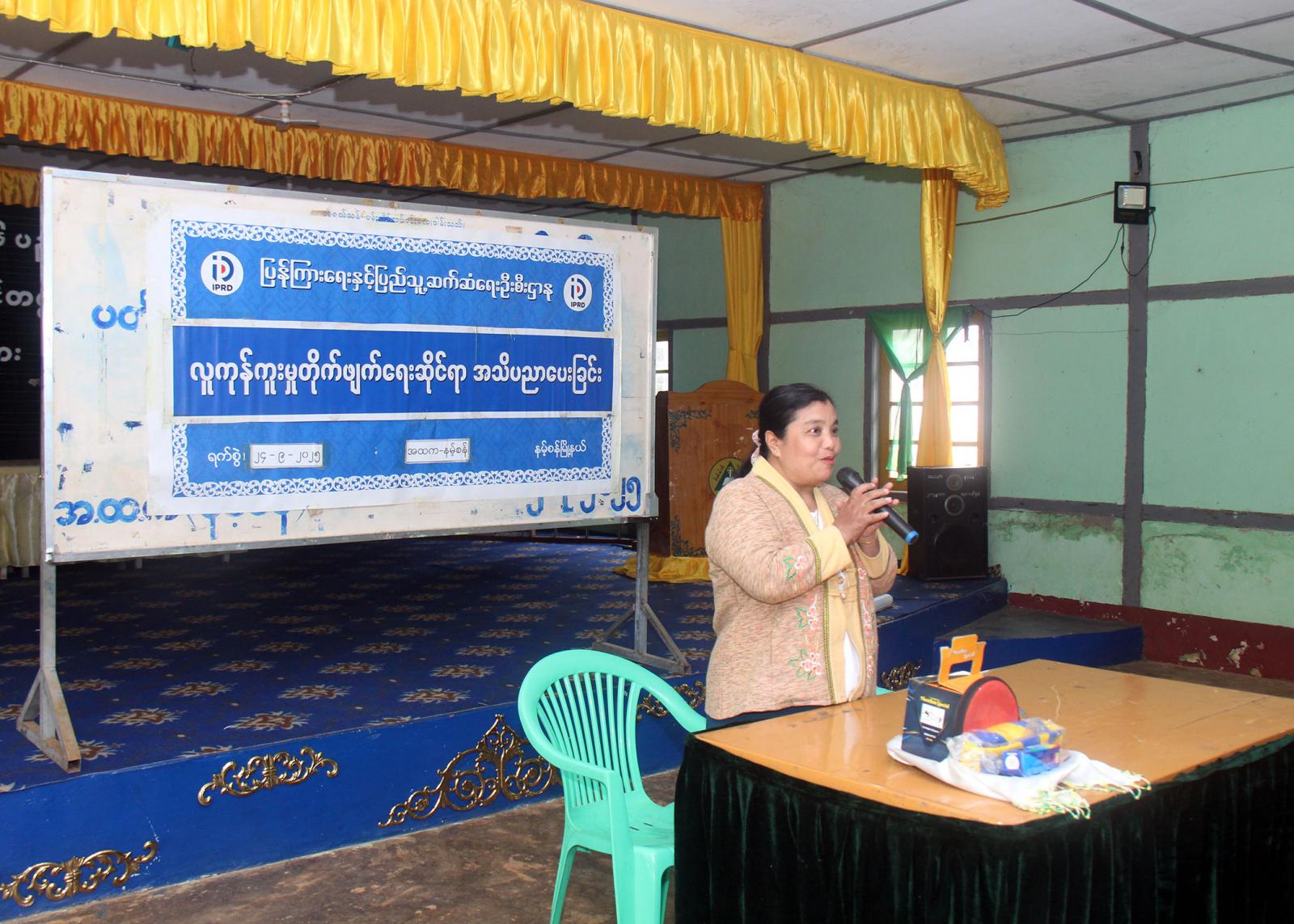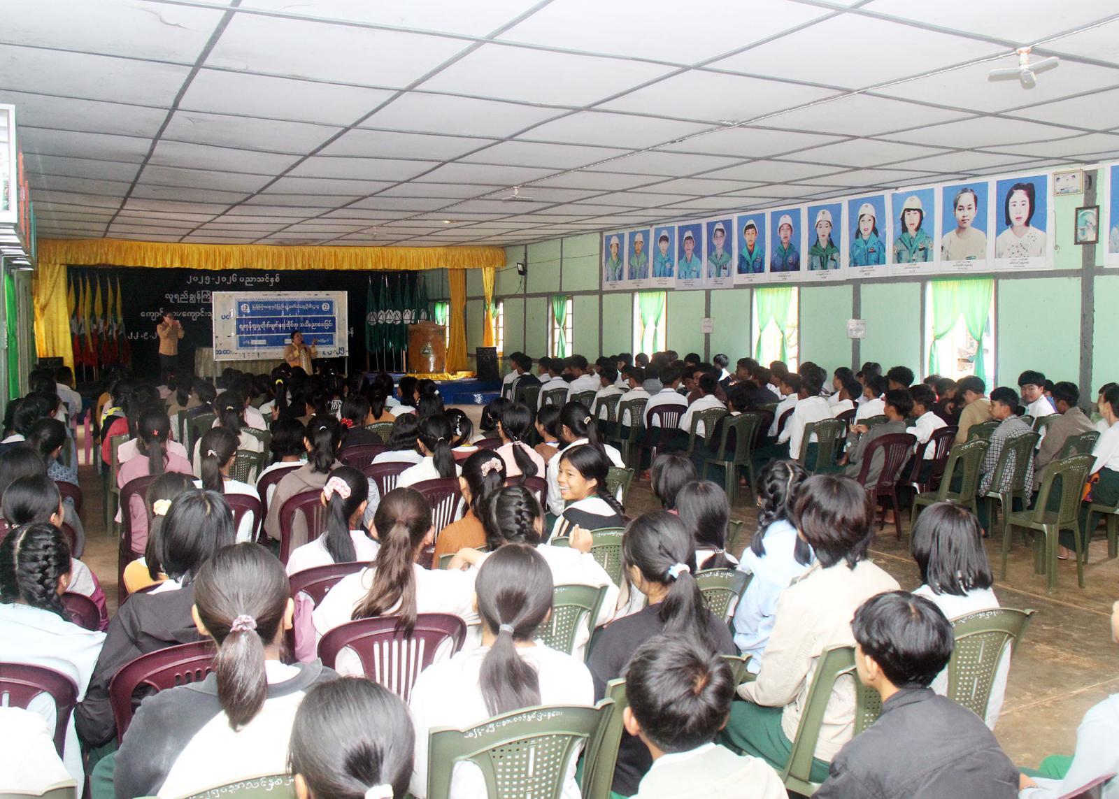 ထို့နောက် မြို့နယ်ပြန်ကြားရေးနှင့်ပြည်သူ့ဆက်ဆံရေးဦးစီးဌာနမှ ဦးစီးအရာရှိ ဒေါ်ဥမ္မာအောင်က လူကုန်ကူးမှုတားဆီးကာကွယ်ရေးနှင့် လူငယ်နှင့်စာဖတ်ခြင်း ခေါင်းစဉ်ဖြင့် အသိပညာပေးပြောကြားခဲ့သည်။