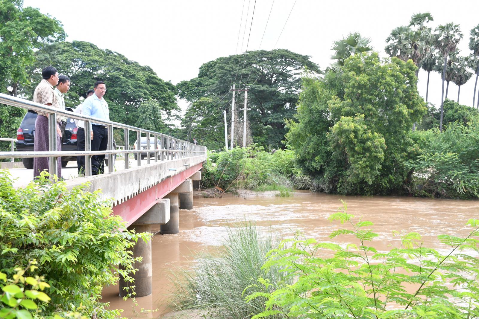 ဦးစွာ နေပြည်တော်ကောင်စီဝင် ဦးဇေယျာလင်းနှင့် တာဝန်ရှိသူများ “တိုင်ဖွန်းမုန်တိုင် ရာဂါဆာ” ဝင်ရောက်မှုကြောင့် မိုးရွာသွန်းခဲ့သဖြင့် တောင်ကျရေများနှင့် နဝင်းချောင်းရေလျံကာ ရှောက်ကုန်းကျေးရွာ၊ ကွင်းအမှတ်(၁၄၁၁-က)၊ စပါးစိုက်ခင်းများအတွင်း ရေများဝင်ရောက်လာမှုအား ကြည့်ရှုစစ်ဆေး၍ စပါးစိုက်ခင်းများ ပျက်စီးမှုမရှိစေရေးနှင့် လိုအပ်သည်များ သက်ဆိုင်ရာ ကျေးရွာအုပ်စုတာဝန်ရှိသူများအား ဆွေးနွေးမှာကြားခဲ့ပြီးနောက် ရန်ကုန်-မန္တလေးကားလမ်းဟောင်း၊ အဆုံ(ဇီကုန်း)တံတား၊ ကင်းသာချောင်းကူးတံတားများ ရေစီးဆင်းနေမှုများ ကြည့်ရှုစစ်ဆေးခဲ့သည်။