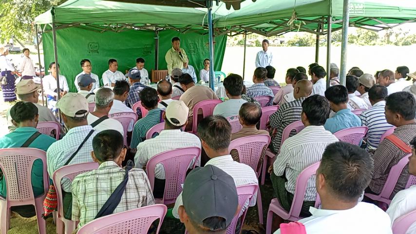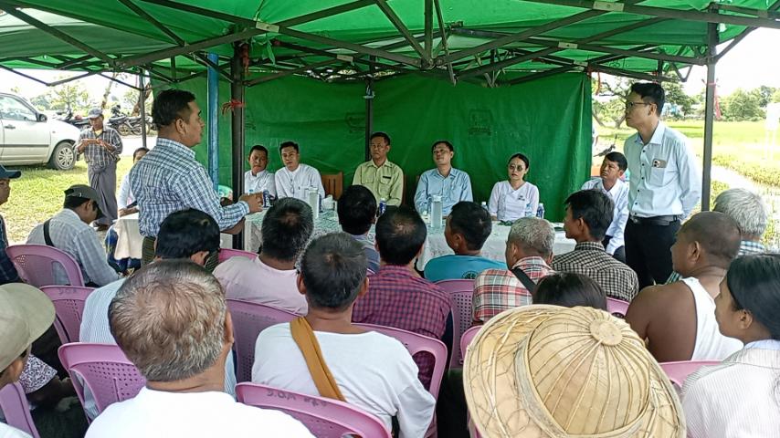 ကွင်းသရုပ်ပြပွဲတွင် မြို့နယ်စီမံခန့်ခွဲရေးနှင့်အုပ်ချုပ်ရေးကော်မတီဥက္ကဋ္ဌ ဦးမင်းအောင်က သီးနှံများပန်းတိုင်အထွက်နှုန်းရရှိရေးနှင့်စပ်လျဉ်း၍ အမှာစကားပြောကြားပြီး မြို့နယ် စိုက်ပျိုးရေးဦးစီးဌာနမှူး ဦးစိုးမင်းနိုင်က မိုးစပါးပန်းတိုင်အထွက်နှုန်းရရှိရေးအတွက် သွင်းအားစုများ ထည့်သွင်းဆောင်ရွက်ရာ၌ သီးနှံပင်၏ သက်တမ်းအလိုက် အသုံးပြုရမည့် မြေဩဇာများအား နှုန်းထားမှန်ကန်စေရေး၊ လေလွင့်ဆုံးရှုံးမှုမရှိစေရေးနှင့် ထိရောက်မှုရှိပြီး အပင်အတွက်အကျိုးဖြစ်ထွန်းစေရေး၊ သဘာဝမြေဩဇာများအချိုးကျရောစပ်၍ အချိန်ကိုက် ကြဲပက် ဆောင်ရွက်ခြင်းဖြင့်ရရှိလာမည့် အကျိုးကျေးဇူးများအား ရှင်းလင်းဆွေးနွေးသည်။ ဆက်လက်၍ တက်ရောက်လာသောဒေသခံတောင်သူများက သိလိုသော အကြောင်းအရာများကို မေးမြန်းခဲ့ရာ မြို့နယ်သက်ဆိုင်ရာ တာဝန်ရှိသည့်စိုက်ညှိအဖွဲ့ဝင်များက ဆွေးနွေးဖလှယ်ခဲ့ပြီး ၂၀၂၅-၂၀၂၆ခုနှစ် မိုးစပါးပန်းတိုင်အထွက်နှုန်းရရှိရေးအတွက် ဓာတ်မြေဩဇာနှင့်သဘာဝ မြေဩဇာအချိုးကျရောစပ်ကြဲပက်ခြင်းပညာပေး ကွင်းသရုပ်ပြသသည်။