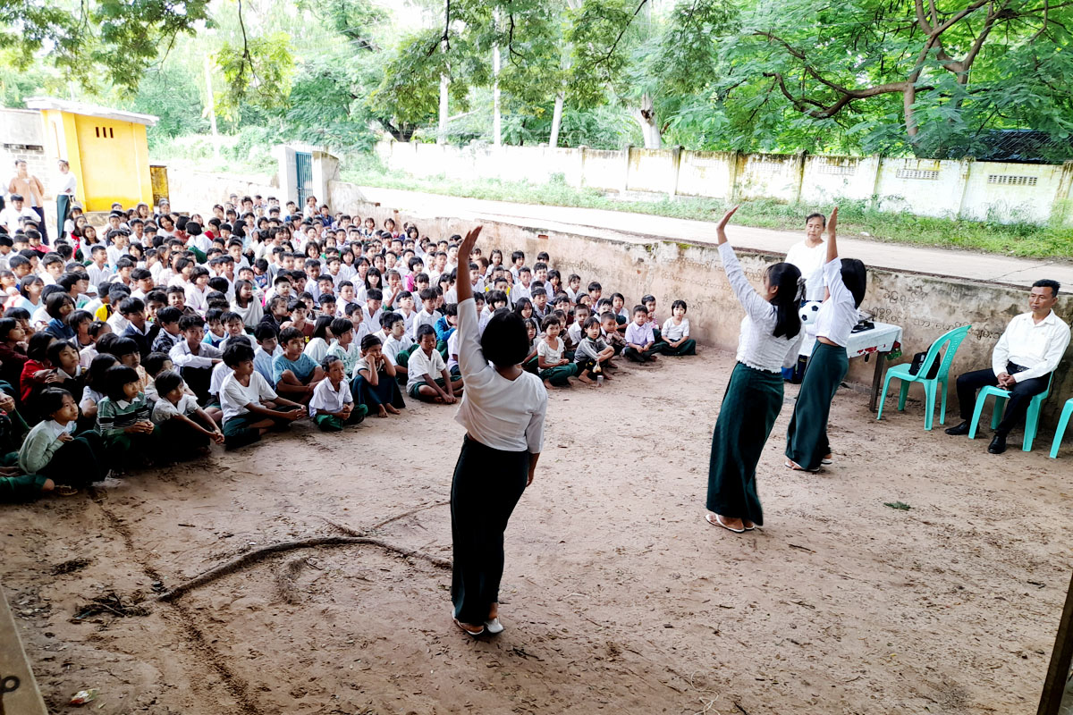 ရှေ့ဦးစွာ အားကစားနှင့်ကာယပညာဦးစီးဌာန မြို့နယ်အားကစားမှူး ဦးအောင်ကိုကိုလတ်က အားကစားဆိုင်ရာများ အသိပညာပေးဟောပြောပြီး၊ ကျောင်းအုပ်ဆရာမကြီး ဒေါ်အိအိဖြူက အားကစားနှင့်ပညာရေး ပေါင်းစပ်ဆောင်ရွက်နိုင်ရေး စီစဉ်ဆောင်ရွက်သွားမည့် အခြေအနေများကို ရှင်းလင်းပြောကြားသည်။ ယင်းနောက် စံပြမူလတန်းလွန်ကျောင်းအတွက် အားကစားပစ္စည်းများကို မြို့နယ်အားကစားမှူးကပေးအပ်ရာ ကျောင်းအုပ်ဆရာမကြီးက လက်ခံရယူသည်။ ယင်းနောက် နည်းစနစ်မှူး ဒေါ်ဝင်းမင်းသန်းနှင့်အဖွဲ့က Physical Fitness Dance အကကို သရုပ်ပြသခဲ့ကြကြောင်း သိရပြီး အဆိုပါ အသိပညာပေးဟောပြောပွဲသို့ မြို့နယ်အကစားမှူးနှင့်ဝန်ထမ်းများ၊ ကျောင်းအုပ်ဆရာမကြီးနှင့် ဆရာ/ဆရာ မများ၊ ကျောင်းသား၊ ကျောင်းသူများ စုစုပေါင်း ၂၅၀ ဦးတက်ရောက်ခဲ့ကြောင်း သိရသည်။