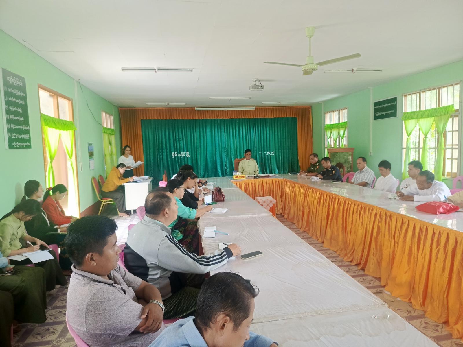 ရှေးဦးစွာ မြို့နယ်စီမံခန့်ခွဲရေးနှင့်အုပ်ချုပ်ရေးကော်မတီဥက္ကဋ္ဌ၊ မြို့နယ်အုပ်ချုပ်ရေးမှူး ဦးမောင်တင်ဦးက အမှာစကားပြောကြားပြီး မြို့နယ်ရွေးကောက်ပွဲကော်မရှင်အဖွဲ့ခွဲရုံးမှ ဦးစီးအရာရှိ၊ လူဝင်မှုကြီးကြပ်ရေးနှင့်ပြည်သူ့အင်အားဝန်ကြီးဌာန မြို့နယ်ဦးစီးမှူးရုံးမှ ဦးစီးအရာရှိ၊ မြို့နယ်ဥပဒေအရာရှိတို့က ပထမအကြိမ်မဲဆန္ဒရှင်စာရင်းကပ်ထားကြေညာမည့်အစီအစဉ်၊ မဲဆန္ဒရှင်စာရင်းတွင်ပါဝင်ခြင်းမရှိသေးသူများရှိက တောင်းဆိုလွှာပုံစံဖြင့် ပြန်လည်လျှောက်ထားနိုင်ရန်နှင့် ကန့်ကွက်လွှာ၊ ပြင်ဆင်လွှာများကိုလည်း သတ်မှတ်ကာလအတွင်း လျှောက်ထားတင်ပြနိုင်ခြင်၊ ကြိုတင်မဲပေးပိုင်ခွင့်ရှိသူများနှင့် ကြိုတင်မဲလျှောက်ထားခွင့်ရှိသည့် ကာလအပိုင်းအခြား၊ ရွေးကောက်ပွဲကိုနှောင့်ယှက်လာမည့် အဖျက်အမှောင့်မှန်သမျှမရှိစေရေး ရွေးကောက်ပွဲဆိုင်ရာဥပဒေအကြောင်းအရာများကို ဆွေးနွေးတင်ပြကြရာ တက်ရောက်လာသူများက မိမိတို့သိရှိလိုသည်များကို ပြန်လည်မေးမြန်းဆွေးနွေးခဲ့ကြသည်။