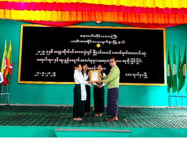 ရှေးဦးစွာ မြို့နယ်စီမံခန့်ခွဲရေးနှင့် အုပ်ချုပ်ရေးကော်မတီဥက္ကဋ္ဌ ဦးငြိမ်းမောင်မောင်က အဖွင့်အမှာစကားပြောကြားပြီး မြို့နယ်ပညာရေးမှူး ဒေါ်ချိုချိုလှိုင်က ထူးချွန်ဆုရရှိသော ကျောင်းသား/သူများနှင့် သင်ကြားပေးခဲ့သော ဆရာ၊ ဆရာမများကို ဂုဏ်ပြုစကားပြောကြားခဲ့သည်။ ဆက်လက်၍ မြို့နယ်စီမံခန့်ခွဲရေးနှင့် အုပ်ချုပ်ရေးကော်မတီဥက္ကဋ္ဌ ဦးငြိမ်းမောင်မောင်နှင့် မြို့နယ်ပညာရေးမှူး ဒေါ်ချိုချိုလှိုင်တို့က တက္ကသိုလ်စာမေးပွဲတွင် အောင်ချက်အကောင်းဆုံး ကျောင်းများနှင့် ဂုဏ်ထူးရရှိသာ ကျောင်းသား/သူတို့အား ဆုချီးမြှင့်ပြီး မြို့နယ်ဌာနဆိုင်ရာအကြီးအကဲများက ဂုဏ်ထူးရရှိအောင် သင်ကြားပြသခဲ့သော ဆရာ၊ ဆရာမများနှင့် ထူးချွန်စွာအောင်မြင်ခဲ့သော ကျောင်းသား/သူများကို ဆက်လက်ဆုချီးမြှင့်ပေးခဲ့သည်။
