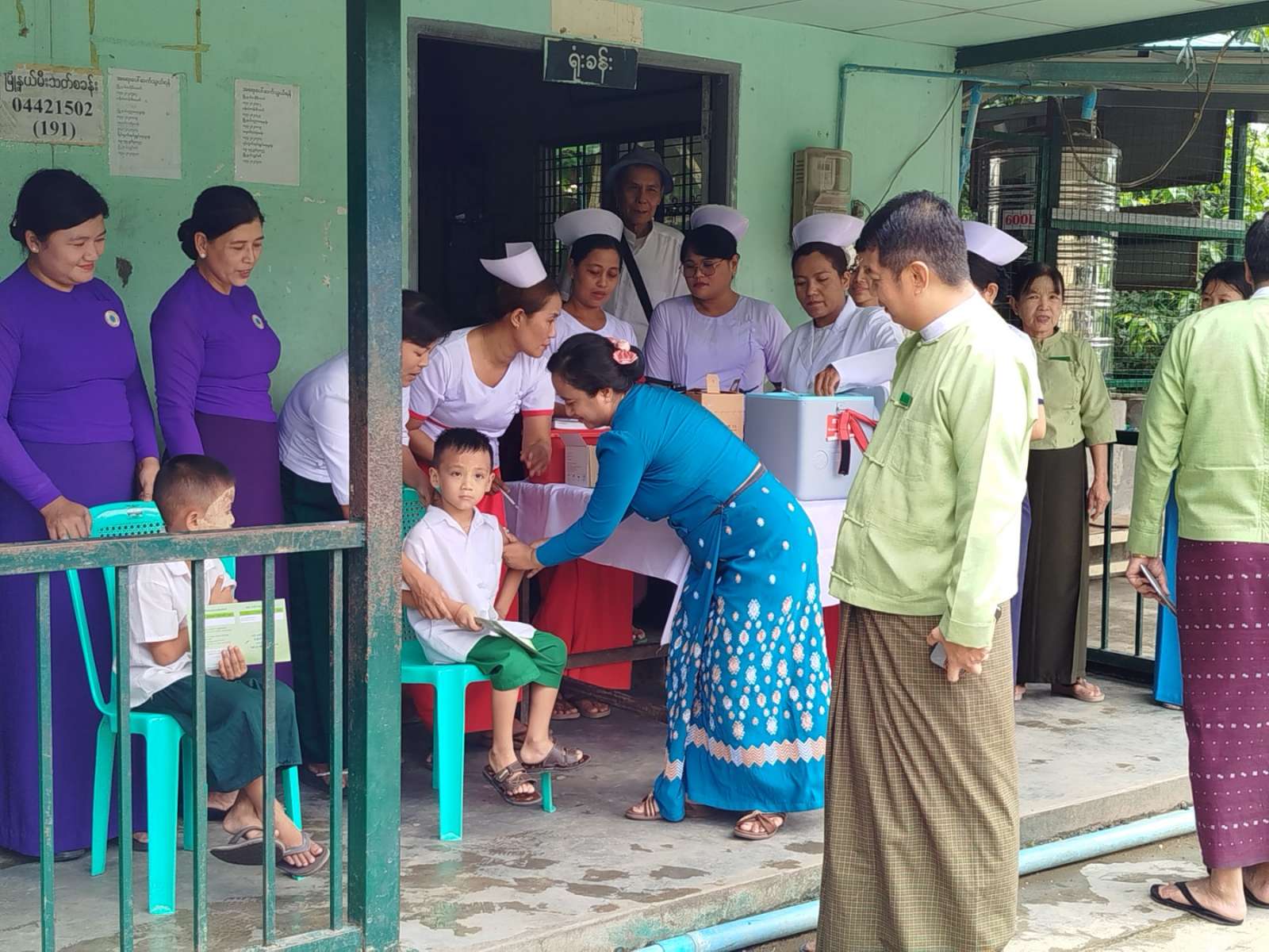 ဧရာဝတီတိုင်းဒေသကြီး၊ ဟင်္သာတခရိုင်၊ ဟင်္သာတမြို့နယ်၌ ခရိုင်နှင့်မြို့နယ် ပြည်သူ့ကျန်းမာရေးဦးစီးဌာနမှ ကာကွယ်ဆေးဖြင့် ကာကွယ်၍ရသော ရောဂါများ မဖြစ်ပွားစေရေးအတွက် အရှိန်အဟုန်မြှင့် ဆောင်ရွက်လျက်ရှိရာ ယနေ့နံနက်ပိုင်းတွင် ကင်းရပ်ကွက်ရှိ အ.မ.က(၂၀)ကျောင်း၌ ဆုံဆို့မေးခိုင်ရောဂါ ကာကွယ်ဆေးနှင့် သားအိမ်ခေါင်း ကင်ဆာရောဂါကာကွယ်ဆေးကို ထိုးနှံပေးခဲ့ကြသည်။