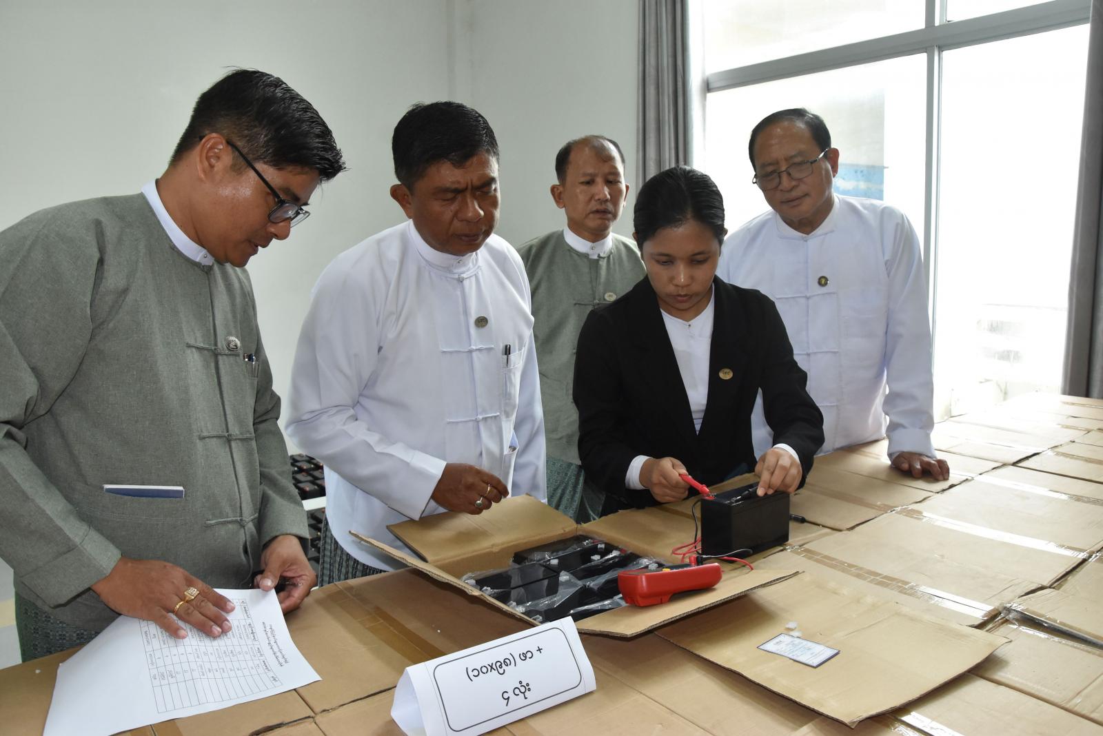 ထိုမှတစ်ဆင့် ပြည်ထောင်စုရွေးကောက်ပွဲကော်မရှင်အဖွဲ့ဝင် ဦးခင်ဇော်သည် ပြည်နယ်အစိုးရ အဖွဲ့ဝင် သယံဇာတရေးရာဝန်ကြီး၊ တာဝန်ရှိသူများနှင့်အတူ အထွေထွေရွေးကောက်ပွဲတွင် အသုံးပြုသွားမည့် အီလက်ထရောနစ်မဲပေးစက်ပုံးများ ထိန်းသိမ်းထားရှိမှု အခြေအနေများနှင့် မဲပေးစက်တွင် အသုံးပြုမည့် ၁၂ ဗို့ ဘက္ကထရီများ အားကြာရှည်ခံနိုင်မှု အခြေအနေများ၊ အခြားဆက်စပ်ပစ္စည်းများ စနစ်တကျထိန်းသိမ်းထားရှိမှုတို့ကို ကြည့်ရှုစစ်ဆေးခဲ့ကြပြီး လိုအပ်သည်များကို ဖြည့်ဆည်းဆောင်ရွက်ပေးခဲ့သည်။