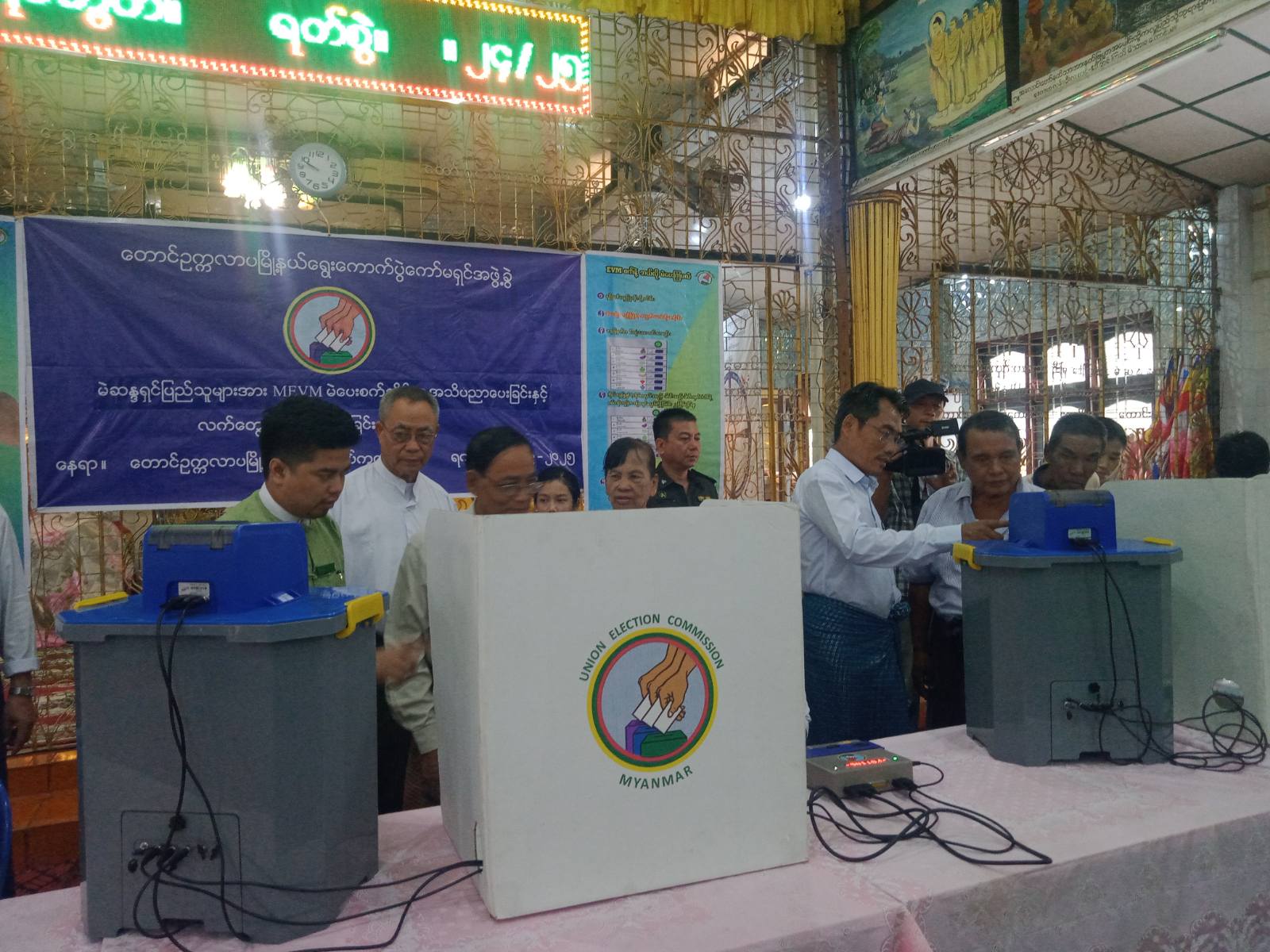 ထို့နောက် တက်ရောက်လာကြသည့် ဒေသခံပြည်သူများအား မြန်မာအီလက်ထရောနစ် (MEVM) မဲပေးစက်အသုံးပြု၍ လက်တွေ့စမ်းသပ်မဲပေးခြင်း၊ မဲပေးစက်မှ ထုတ်ပေးသည့် မဲရလဒ်စာရွက်နှင့် မဲပုံးအတွင်းရှိ မဲလက်မှတ်များကို တိုက်ဆိုင်စစ်ဆေး၍ မဲရလဒ် မှန်၊ မမှန် စိစစ်ခြင်းစသည့် မဲပေးပုံအဆင့်ဆင့်ကို ပြည်သူများ ကျယ်ကျယ်ပြန့်ပြန့် သိရှိနိုင်စေရန် လက်တွေ့သရုပ်ပြဆောင်ရွက်ခဲ့ကြောင်း သိရသည်။