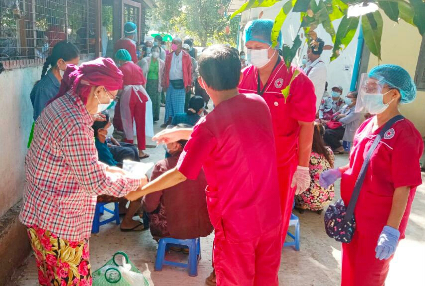 ထိုသို့ အသိပညာပေးခြင်းများဆောင်ရွက်ရာတွင် ရန်ကုန်မြောက်ပိုင်းခရိုင် ကြက်ခြေနီတပ်ဖွဲ့မှ ခရိုင်တပ်ဖွဲ့မှူး ဦးနေဆန်း(ဥက္ကဋ္ဌ)နှင့်တပ်ဖွဲ့ဝင်များ၊ မြို့နယ်ကြက်ခြေနီတပ်ဖွဲ့ဝင်များမှ ကိုဗစ်-၁၉ ရောဂါ ကူးစက်ကာလအတွင်း လူစုလူဝေးမဖြစ်စေရန်အတွက် ပင်စင်လာရောက် ထုတ်ယူ သည့် ပင်စင်စားများအား ကျန်းမာရေးနှင့်အားကစားဝန်ကြီးဌာနမှ ထုတ်ပြန်ထားသည့် စည်းမျဉ်းစည်းကမ်းချက်များနှင့်အညီ တစ်ဦးနှင့် တစ်ဦး(၆)ပေခွာတန်းစီစေပြီး ကြက်ခြေနီ တပ်ဖွဲ့ဝင်များမှ ကျန်းမာရေးစစ်ဆေးမှုအနေဖြင့် ကိုယ်အပူချိန် တိုင်းတာခြင်းများ၊ လက်သန့် ဆေးရည်များဖြင့် လက်များကိုဆေးကြောသန့်စင်စေခြင်း၊ နှာခေါင်းစည်း(Mask) များတပ်ဆင် စေခြင်းနှင့် သက်ကြီးရွယ်အိုပင်စင်စားများနှင့် မသန်စွမ်းပင်စင်စားများအတွက် အားဆေးများ အဖြစ် ရယ်ဘီကွန်၊ ရီဗိုက်တာ၊ ဒီဂျရောငုံဆေးပြား၊ ဒီကိုလ်ဂျင်ကဒ်များ၊ နှာခေါင်းစည်း (Mask)များ၊ BPI ဓာတ်ဆားထုပ်များကိုလည်း ကြက်ခြေနီတပ်ဖွဲ့ဝင်များမှ အခမဲ့လှူဒါန်း ခဲ့ကြောင်း သိရသည်။