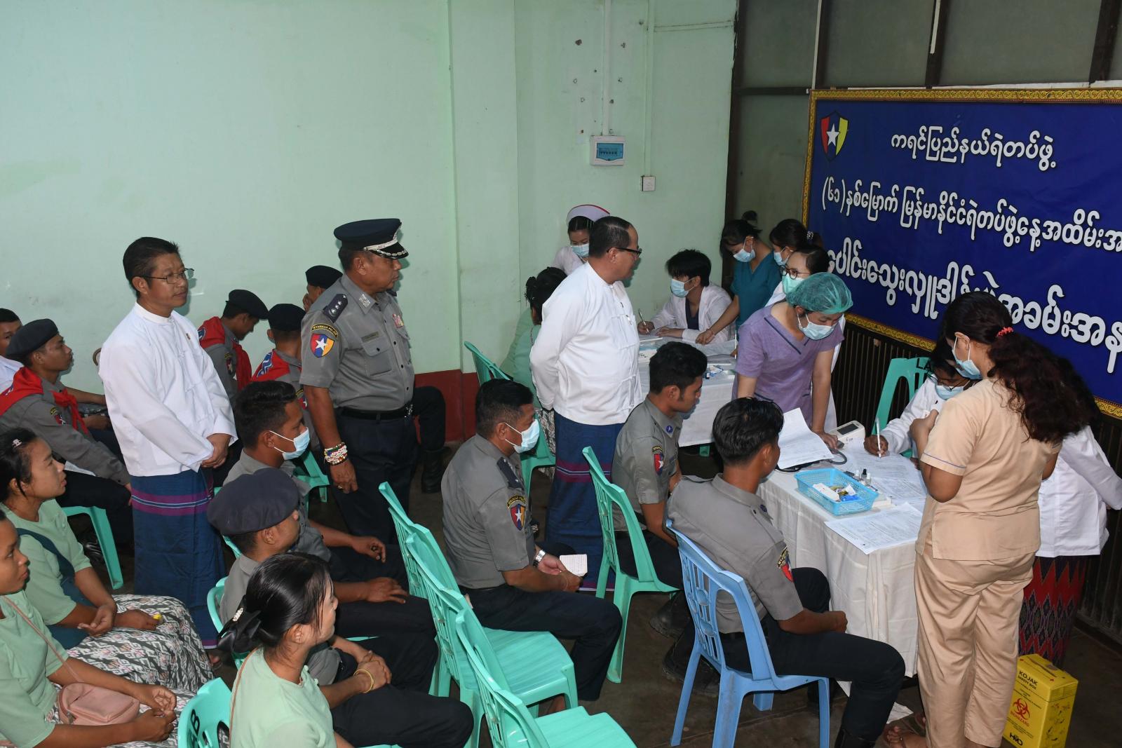 ထို့နောက် ပြည်နယ်ဝန်ကြီးချုပ်နှင့်တာဝန်ရှိသူများသည် ပြည်သူ့ဆေးရုံကြီး ရောဂါဗေဒဌာန သွေးလှူဘဏ်တွင် ရဲတပ်ဖွဲ့ဝင်များနှင့်မိသားစုဝင်များ လှူဒါန်းသော သွေးသန့်များ သိုလှောင်ထားရှိမှုအခြေအနေများကို ကြည့်ရှုစစ်ဆေးပြီး ပြည်နယ်ပြည်သူ့ကျန်းမာရေးဦးစီးဌာနမှူး ဒေါက်တာကျော်စွာမြင့်၊ ဆေးရုံအုပ်ကြီးဒေါက်တာဘရန်အောင်တို့၏ သွေးလှူဘဏ်နှင့်စပ်လျဉ်း၍ ရှင်းလင်းတင်ပြမှုများအပေါ် လိုအပ်သည်များပေါင်းစပ်ညှိနှိုင်းဖြည့်ဆည်း ဆောင်ရွက်ပေးခဲ့ကြောင်း သိရသည်။