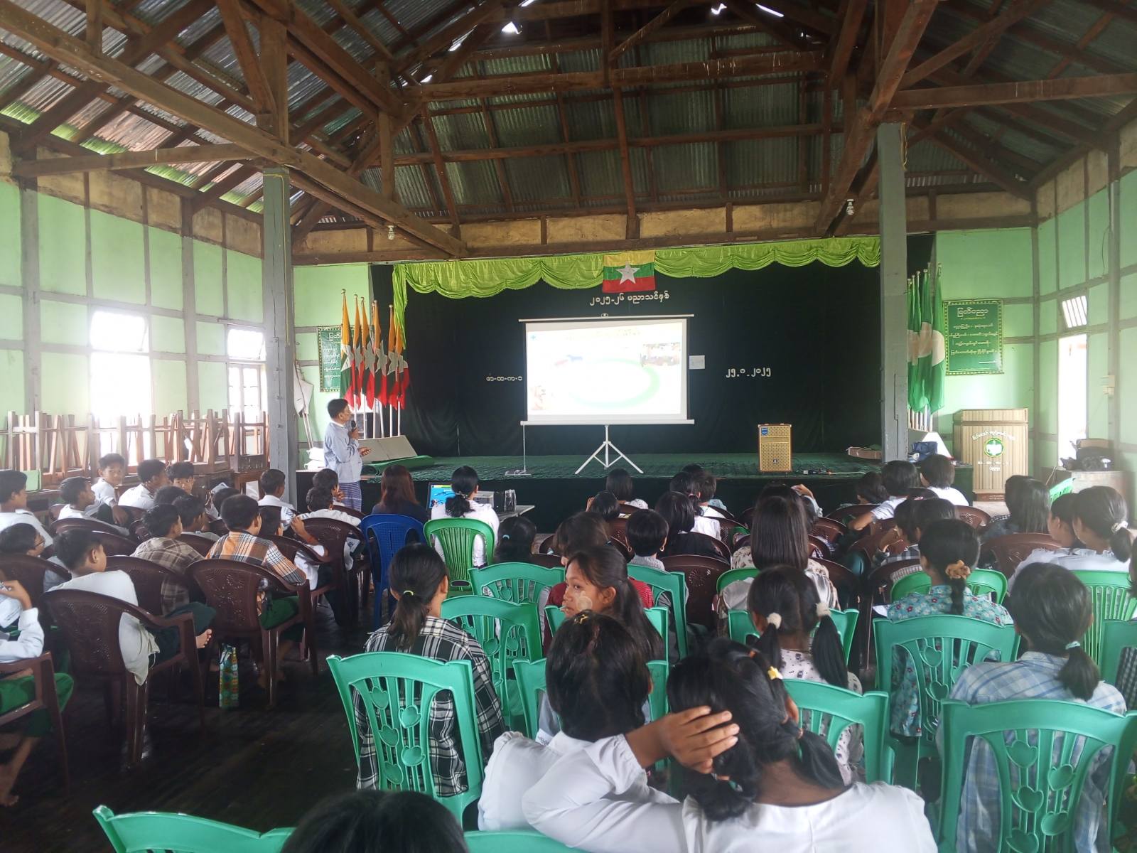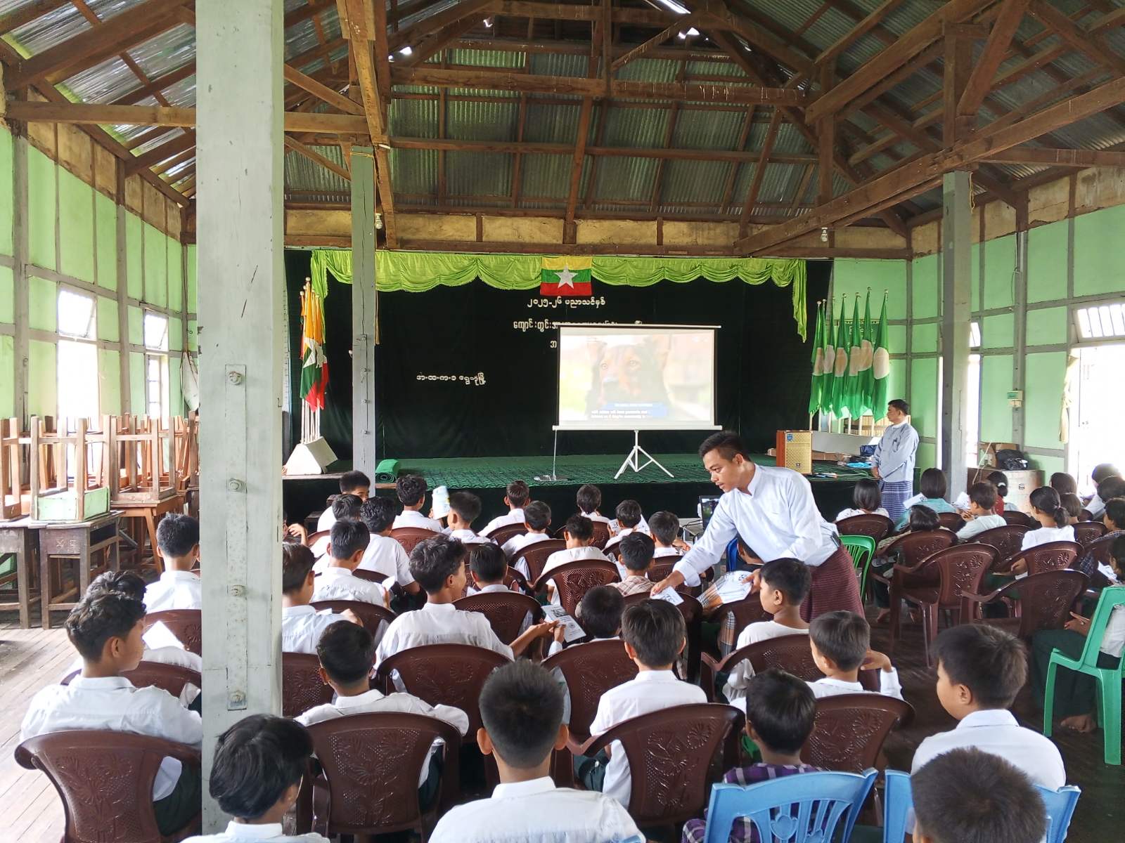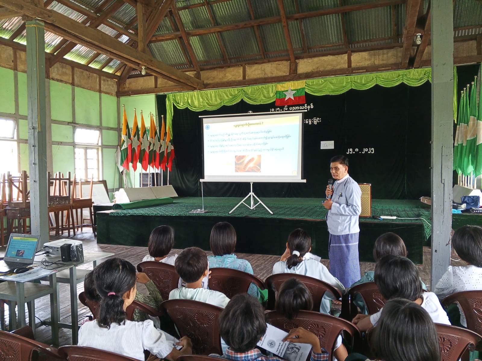 ထို့နောက် ရွှေဘို့မြို့နယ်၊ မွေးမြူရေးနှင့်ကုသရေးဦးစီးဌာနမှ လက်ထောက်ညွှန်ကြားရေးမှူး ဒေါက်တာ မော်မြင့်ဦးက ခွေးရူးရောဂါကူးစက်ခံရနိုင်သည့်နည်းလမ်းများ၊ ခွေးရူးရောဂါကူးစက်ခံရမှုအန္တရာယ်ရှိသောသူများ၊ ခွေးမှာ ခွေးရူးရောဂါဖြစ်နေကြောင်း ဘယ်လိုခွဲခြားနိုင်မလဲ ၊လူတွင် ခွေးရူးပြန်ရောဂါလက္ခဏာများမှာဘာတွေလဲ၊ လူတွင် ခွေးကိုက်ခံရပါက ခွေးရူးပြန်ရောဂါမဖြစ်အောင် ဘယ်လိုကာကွယ်မလဲ၊ လူတွင် ခွေးရူးရောဂါကာကွယ်ဆေး မဖြစ်မနေထိုးရမည့်အခြေအနေများ၊ မိမိ၏ အိမ်မွေး ခွေး/ကြောင်ကို ခွေးရူးရောဂါမှ ဘယ်လိုကာကွယ်မလဲနှင့် သတိပြုလိုက်နာရမည့်အချက်များကို ကျောင်းသား/သူ များအား အသေးစိတ်ရှင်းလင်းပြောကြားခဲ့ကြောင်း သိရသည်။