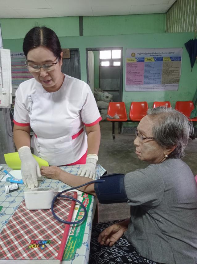 ထိုသို့ ကျန်းမာရေးစောင့်ရှောက်မှုများပေးရာတွင် မြို့နယ်ပြည်သူ့ကျန်းမာရေးဦးစီးဌာနမှူး ဒေါက်တာမျိုးမင်းထွန်းဦးဆောင်ကြီးကြပ်မှုဖြင့် ကျန်းမာရေး၀န်ထမ်းများက ကျန်းမာရေးစောင့်ရှောက်မှုခံယူရန် ရောက်ရှိလာကြသော ဆီးချို၊ သွေးတိုးရောဂါ ခံစားနေရသော သက်ကြီးဘိုးဘွားများအား ကျန်းမာရေးဗဟုသုတများအား အသိပညာပေးဟောပြောပေးခြင်း၊ တီဘီရောဂါနှင့်ပတ်သတ်၍ အသိပညာပေးခြင်း၊ ကျန်းမာရေး၀န်ထမ်းများက သက်ကြီးဘိုးဘွားများအား အသက်ကြီးပုဂ္ဂိုလ်စောင့်ရှောက်ရေးလုပ်ငန်းများ စမ်းသပ်စစ်ဆေးခြင်း၊ ဆီးချို၊ သွေးချို၊ သွေးတိုးရောဂါစစ်ဆေးခြင်းနှင့် လိုအပ်သည့်ဆေး၀ါးများအား ထောက်ပံ့ပေးအပ်ဆောင်ရွက်ပေးလျက်ရှိကြောင်း သိရသည်။