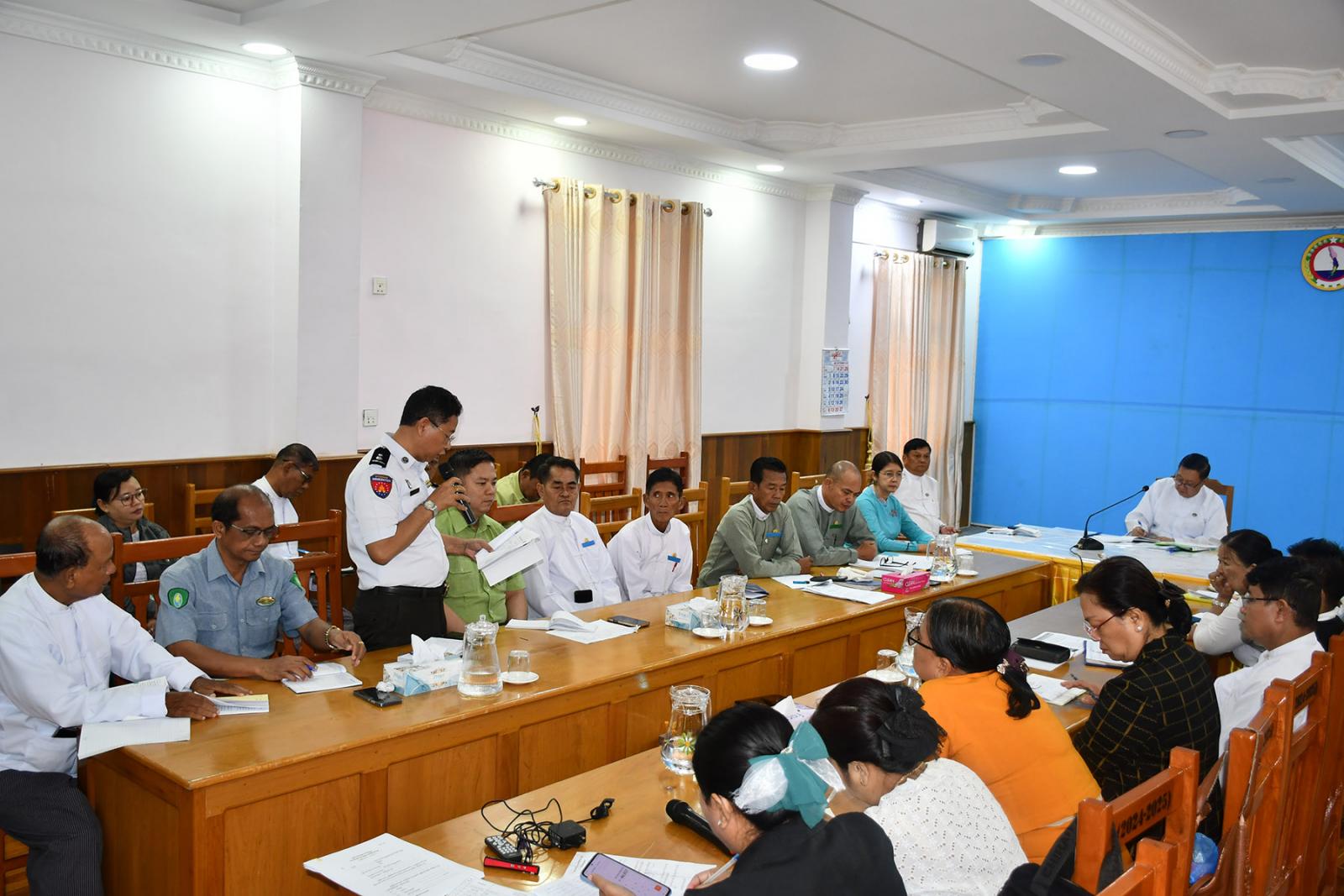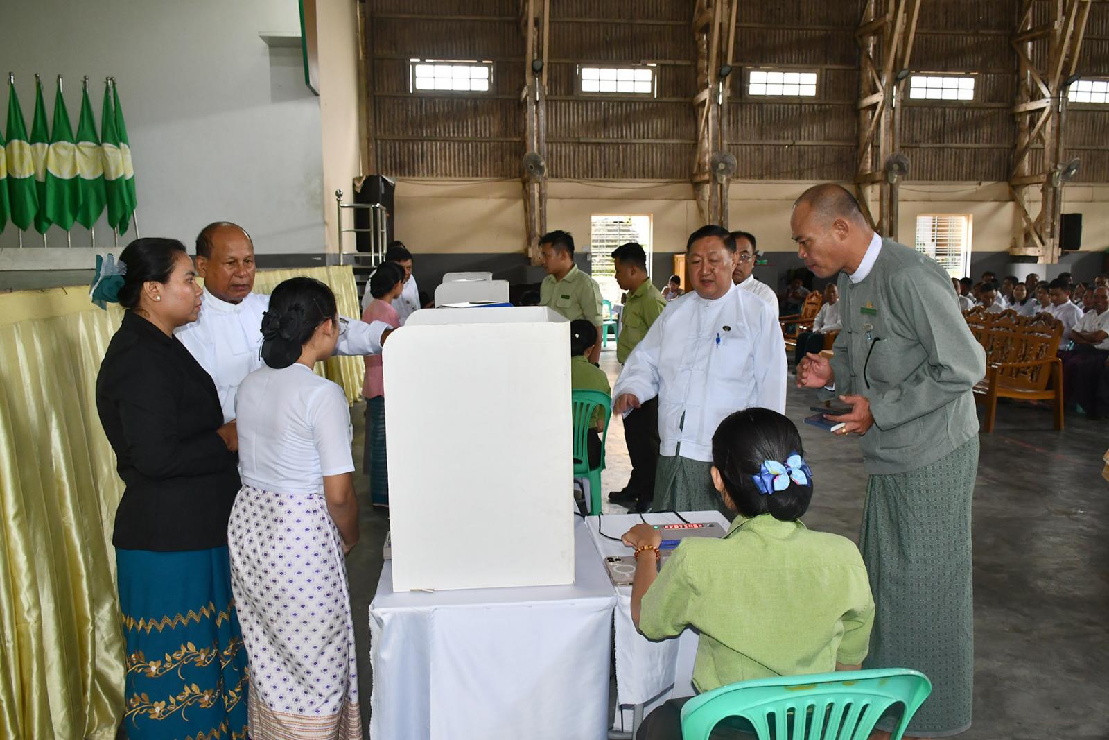 ယင်းနောက် တက်ရောက်လာသည့် တိုင်းဒေသကြီး၊ ခရိုင်နှင့် မြို့နယ် ရွေးကောက်ပွဲကော်မရှင်အဖွဲ့ခွဲ တာဝန်ရှိသူများက ရွေးကောက်ပွဲဆိုင်ရာလုပ်ငန်းများနှင့် ပတ်သက်၍ ဆွေးနွေးတင်ပြကြပြီး မဲပေးစက်များ ကြီးကြပ်ထိန်းသိမ်းရေးကော်မတီဥက္ကဋ္ဌက ဖြည့်စွက်ရှင်းလင်းတင်ပြရာ ဆွေးနွေးတင်ပြချက်နှင့်စပ်လျဉ်း၍ ပြည်ထောင်စုရွေးကောက်ပွဲကော်မရှင်အဖွဲ့ဝင် ဦးသန်းထွတ်သိန်းက တာဝန်ရှိသူများနှင့် ပေါင်းစပ်ညှိနှိုင်းဆောင်ရွက်ပေးပြီး နိဂုံးချုပ်အမှာစကား ပြောကြားသည်။