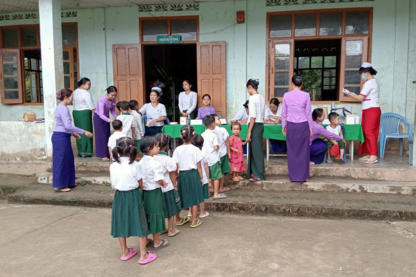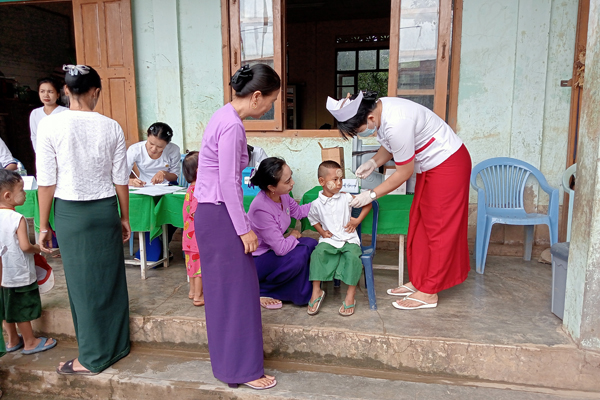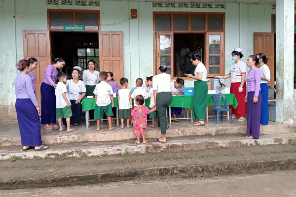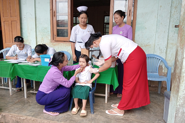 ထိုသို့ဆောင်ရွက်ရာတွင် မြို့နယ်ပြည်သူ့ကျန်းမာရေးဦးစီးဌာနမှူး ဒေါက်တာမြမြသန်း၏ ကြီးကြပ်မှုဖြင့် သက်ဆိုင်ရာတာဝန်ကျ သားဖွားဆရာမများ၊ သူနာပြုဆရာမများ၊ မိခင်နှင့်ကလေးစောင့်ရှောက်ရေးအသင်းဝင်များနှင့် အခြေခံပညာကျောင်းများမှ ကျောင်းအုပ်ကြီးများနှင့် အတန်းပိုင်ဆရာမများက အမည်စာရင်းရေးသွင်းခြင်း၊ ကိုယ်အပူချိန်တိုင်းတာပေးခြင်းတို့ကို ကူညီဆောင်ရွက်ပေးကြပြီး အသက် (၅)နှစ် KG ကျောင်းသား၊ ကျောင်းသူများအား DT ဆုံဆို့မေးခိုင်ကာကွယ်ဆေး ထပ်ဆောင်းထိုးနှံပေးခြင်း၊ အသက် (၉)နှစ်မှ (၁၀)နှစ်အတွင်း ကျောင်းသူများကို HPV သားအိမ်ခေါင်းကင်ဆာရောဂါ ကာကွယ်ဆေးများကို တစ်ပြိုင်တည်း ထိုးနှံပေးလျက်ရှိကြောင်း သိရသည်။