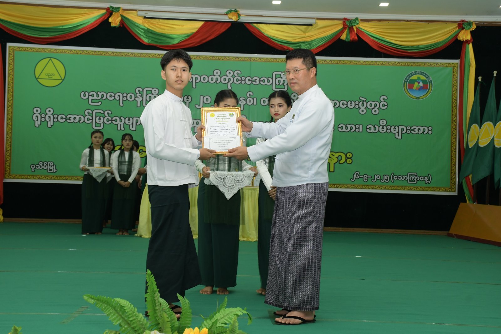 ဦးစွာ အခမ်းအနားကို ပုသိမ်မြို့၊ အမှတ်(၆)အခြေခံပညာအထက်တန်းကျောင်းမှ ကျောင်းသား၊ ကျောင်းသူလေးများက“ ဘက်စုံပညာရည်တို့လှမ်းချီ” သီချင်းဖြင့် သီဆိုဖွင့်လှစ်ခဲ့ပြီးနောက် တိုင်းဒေသကြီးဝန်ကြီးချုပ်က“ တိုင်းဒေသကြီးအနေဖြင့် တက္ကသိုလ်ဝင်စာမေးပွဲတွင် ထူးချွန်စွာအောင်မြင်ခဲ့သည့် ကျောင်းသား၊ ကျောင်းသူများကို ဆုချီးမြှင့်ခဲ့ပြီး ထူးချွန်အောင်သင်ကြားပေးသည့် ဆရာ၊ ဆရာမများ၊ ကျောင်းများကိုလည်း ကျေးဇူးတင်ဂုဏ်ပြုသောအားဖြင့် နှစ်စဉ်နှစ်တိုင်းဂုဏ်ပြုချီးမြှင့်ခဲ့ပါကြောင်း၊ ပညာရေးဝန်ကြီးဌာနမှ ၂ဝ၂၄ ခုနှစ်မှစတင်၍ တက္ကသိုလ်ဝင် စာမေးပွဲတွင် (၆)ဘာသာဂုဏ်ထူးရှင် (၂၄)ဦးနှင့် တစ်နိုင်ငံလုံး အမှတ်အများဆုံး ဆုရရှိခဲ့ကြသူ(၄)ဦးအတွက် တစ်ဦးလျှင် ရွှေငါးမူးသား ချီးမြှင့် ခဲ့ပြီး၊ ၂ဝ၂၅ ခုနှစ်တွင် (၆)ဘာသာဂုဏ်ထူးရှင်(၁ဝ)ဦးနှင့် တစ်နိုင်ငံလုံးအမှတ်အများဆုံးဆုရရှိခဲ့ကြသူ(၆)ဦးအတွက် တစ်ဦးလျှင် ရွှေတစ်ကျပ်သားစီ ချီးမြှင့်ပေးခဲ့ပြီးဖြစ်ပါကြောင်း၊ ပညာရေးဝန်ကြီးဌာနမှ ဧရာဝတီတိုင်းဒေသကြီးအတွင်း ၂ဝ၂၅ ခုနှစ် တက္ကသိုလ်ဝင်စာမေးပွဲတွင် ပညာရေးဝန်ထမ်းသား၊ သမီးများမှ ရိုးရိုးအောင်မြင်လျှင် တစ်သိန်းကျပ်နှုန်း၊ တစ်ဘာသာဂုဏ်ထူးရရှိလျှင် တစ်သိန်းငါးသောင်းကျပ်နှုန်းဖြင့် ချီးမြှင့်မည်ဖြင့်ရာ ရိုးရိုးအောင်မြင်သူ (၄၅၃)ဦး၊ တစ်ဘာသာ ဂုဏ်ထူးရရှိသူ(၃၉)ဦး၊ နှစ်ဘာသာဂုဏ်ထူးရရှိသူ (၃၄)ဦး၊ သုံးဘာသာ ဂုဏ်ထူးရရှိသူ(၁၈)ဦး၊ လေးဘာသာဂုဏ်ထူးရရှိသူ (၇)ဦး၊ ငါးဘာသာဂုဏ်ထူးရရှိသူ(၁)ဦး၊ ခြောက်ဘာသာဂုဏ်ထူးရရှိသူ (၁)ဦး၊ ပညာရေးဝန်ထမ်း သား၊ သမီးစုစုပေါင်း( ၅၅၃ ) ဦးကို ဆုချီးမြှင့်ငွေ စုစုပေါင်း ( ၇၅.၃ဝဝ ) ကျပ်သန်း ချီးမြှင့်ပေးမည်ဖြစ်ပါကြောင်း၊ ယခုနှစ်တွင် ပညာရေးကို ပိုမိုအထောက်အကူဖြစ်စေရန်အတွက် တိုင်းဒေသကြီးတွင် ယခင်နှစ်များထက်မတူသည့် ဂုဏ်ပြုချီးမြှင့်ခြင်းများလည်း ရှိနေပြီဖြစ်ပါကြောင်း၊ Global Earth Agro & Aqua Industry Co., Ltdမှ ယခုနှစ် တက္ကသိုလ်ဝင်တန်းစာမေးပွဲတွင် ထူးချွန်စွာအောင်မြင်သော ထူးချွန်ကျောင်းသား၊ ကျောင်းသူ (၃၀၀)ဦးအား အဆင့်မြင့်ပညာများအား ဘွဲ့ရသည်အထိ ဆက်လက်သင်ကြားနိုင်ရေးအတွက် ဦးဋ္ဌေးမြင့်ပညာသင်ဆုကို ပေးအပ်သွားမည်ဖြစ်ပါကြောင်း၊ တိုင်းဒေသကြီးသည် စိုက်ပျိုးရေး၊ မွေးမြူရေးကိုအခြေခံသည့် တိုင်းဒေသကြီးဖြစ်သည်နှင့်အညီ မကြာခင်ကာလအတွင်း တိုင်းဒေသကြီး၏ စိုက်ပျိုးရေး၊ မွေးမြူရေးလုပ်ငန်းများအတွက် အထောက်အကူဖြစ်စေမည့် စိုက်ပျိုးရေးနှင့်မွေးမြူရေးတက္ကသိုလ်ကို မအူပင်မြို့တွင် ဖွင့်လှစ်တော့မည်ဖြစ်ရာ တက္ကသိုလ်ဝင်တန်းစာမေးပွဲတွင် အမှတ် (၃၅၀)နှင့်အထက်ရရှိသူများ လျှောက်ထားနိုင်ပါကြောင်း၊ Global Earth Agro & A