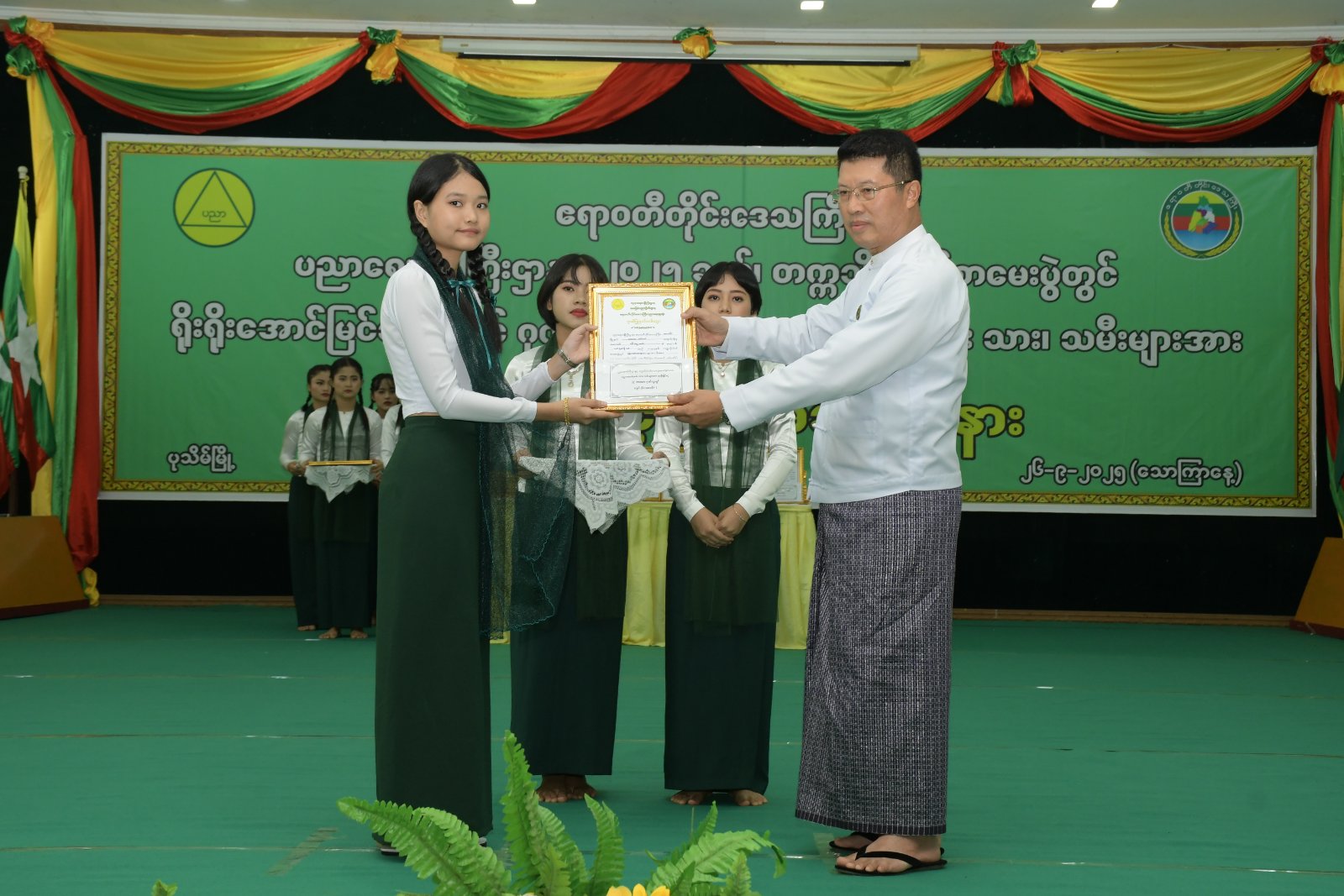 ပညာရေးဝန်ကြီးဌာနမှ ၂၀၂၅ ခုနှစ်၊ တက္ကသိုလ်ဝင်စာမေးပွဲတွင် ရိုးရိုးအောင်မြင်သူများနှင့် ဂုဏ်ထူးရရှိသည့် ပညာရေးဝန်ထမ်းသား၊ သမီးများအား ဆုငွေချီးမြှင့်ခြင်းအခမ်းအနားကို ယမန်နေ့နံနက်ပိုင်းက ပုသိမ်မြို့၊ အမှတ်(၁)အခြေခံပညာအထက်တန်းကျောင်း၊ ရတနာတန်ဆောင်ခန်းမတွင်ကျင်းပခဲ့ရာ တိုင်းဒေသကြီးဝန်ကြီးချုပ် ဦးတင်မောင်ဝင်းသည် တာဝန်ရှိသူများနှင့်အတူ တက်ရောက်၍ ဆုများချီးမြှင့်ခဲ့သည်။