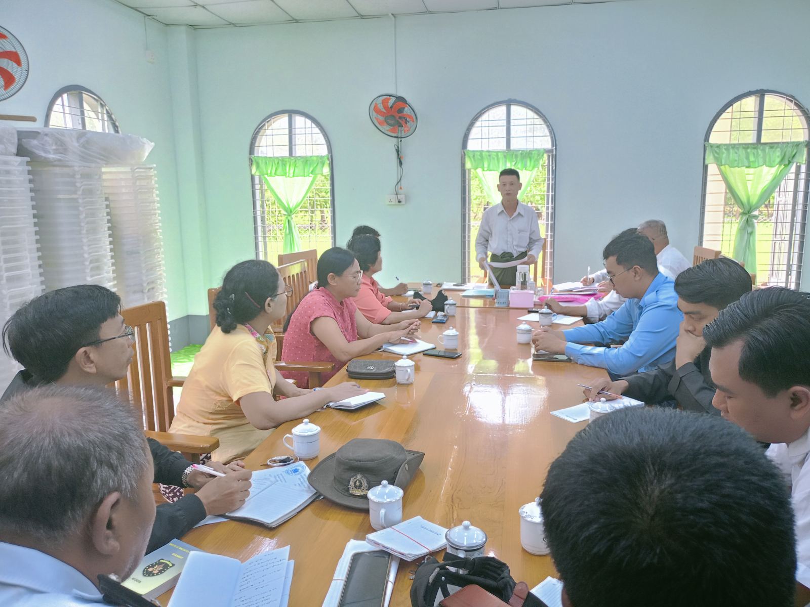 ရန်ကုန်တိုင်းဒေသကြီး၊ တွံတေးခရိုင်၊ ဆိပ်ကြီးခနောင်တိုမြို့နယ်၌ မြို့နယ်ရွေးကောက်ပွဲကော်မရှင်အဖွဲ့ဥက္ကဋ္ဌနှင့် အဖွဲ့ဝင်ဌာနဆိုင်ရာတာဝန်ရှိသူများ ရွေးကောက်ပွဲဆိုင်ရာ လုပ်ငန်းများညှိနှိုင်းဆွေးနွေးခြင်းကို ယမန်နေ့နံနက် (၁၀)နာရီက မြို့နယ်ရွေးကောက်ပွဲကော်မရှင်အဖွဲ့ခွဲရုံး အစည်းအဝေးခန်းမတွင် ပြုလုပ်သည်။