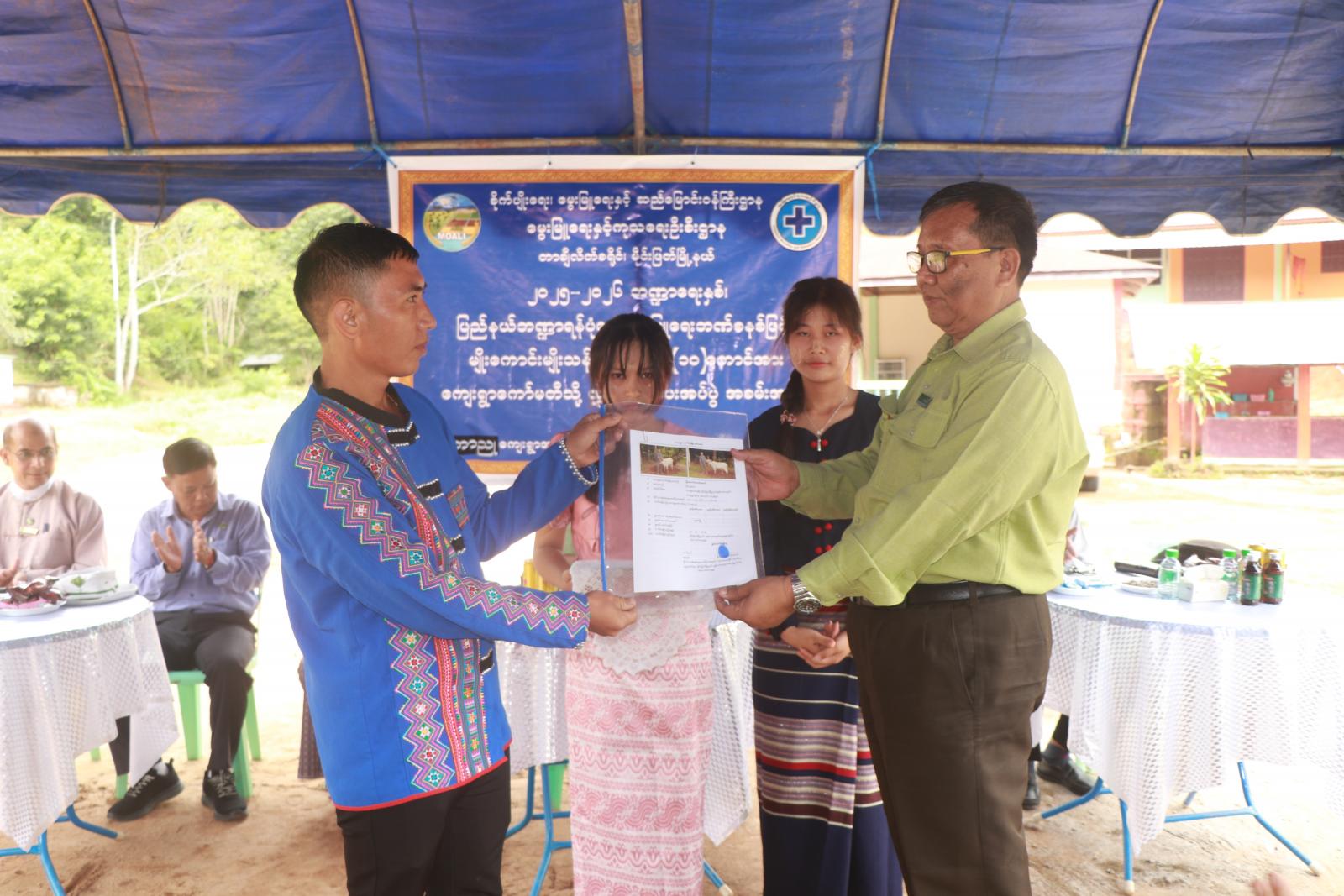 ထို့နောက် တာချီလိတ်ခရိုင်၊ မွေးမြူရေးနှင့်ကုသရေးဦးစီးဌာနမှ ဒေါက်တာတင်ကိုကိုက မျိုးကောင်းမျိုးသန့်နွားမများ ဖြန့်ဖြူးရခြင်းအကြောင်းကို ရှင်းလင်းပြောကြားခဲ့သည်။ ယင်းနောက် စီမံခန့်ခွဲရေးနှင့်အုပ်ချုပ်ရေးကော်မတီဥက္ကဋ္ဌ ဦးတင့်ဝေသုံနှင့်အဖွဲ့ဝင်များ၊ မြို့နယ်စီမံခန့်ခွဲရေးနှင့်အုပ်ချုပ်ရေးကော်မတီဥက္ကဋ္ဌနှင့်အဖွဲ့ဝင်များက တောညုကျေးရွာအုပ်စု၊ ဆွပ်ပန်းကျေးရွာမှ တောင်သူ (၁၀) ဦးတို့အား ဒေသနွားမ (၁၀) ကောင်အတွက် စာချုပ်စာတမ်းများကို လွှဲပြောင်းပေးအပ်ခဲ့ပြီး ကျေးရွာကိုယ်စား တာဝန်ရှိသူတစ်ဦးက ကျေးဇူးတင်စကား ပြောကြားခဲ့သည်။