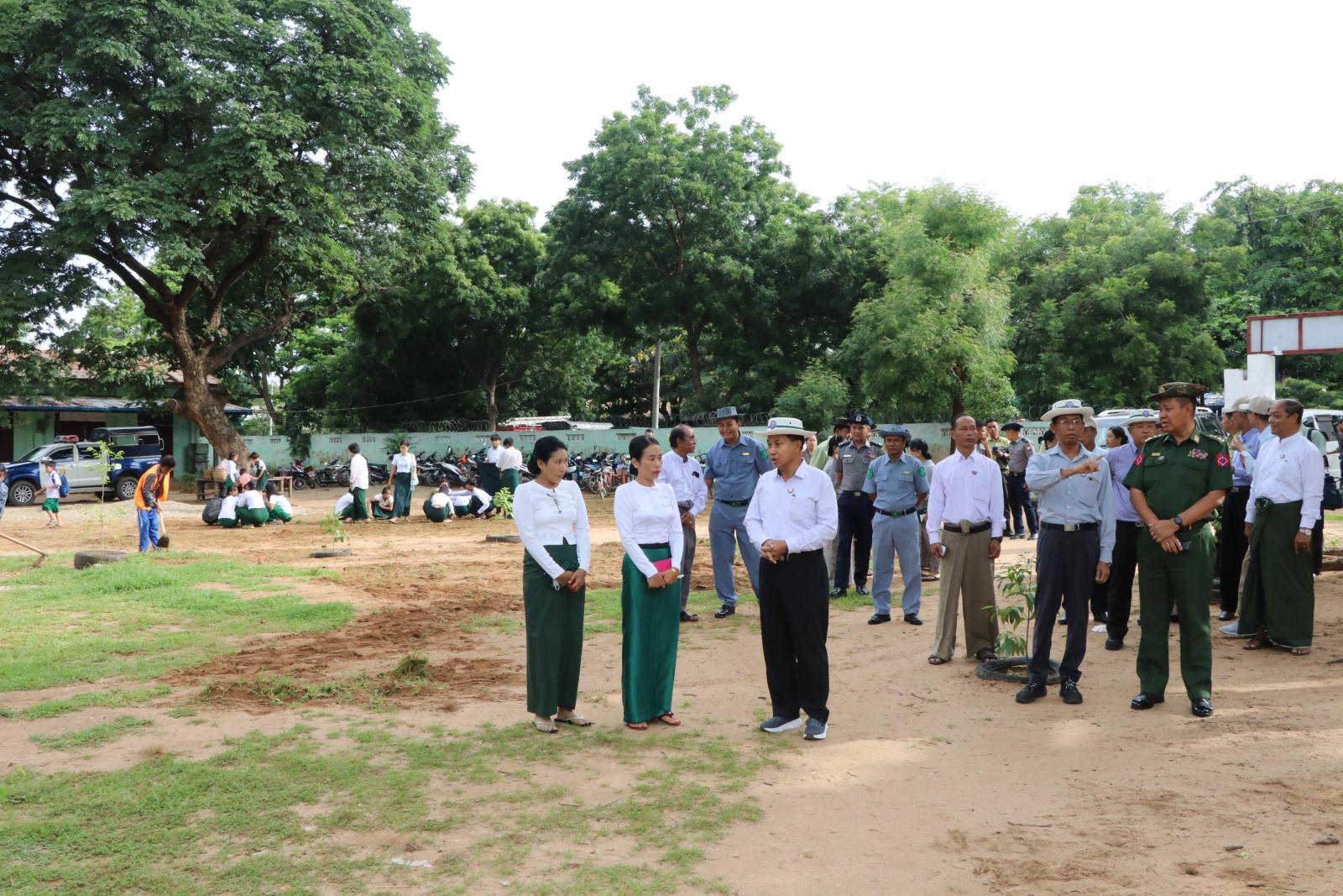 စစ်ကိုင်းတိုင်းဒေသကြီးဝန်ကြီးချုပ် ဦးမြတ်ကျော်နှင့်ဇနီး၊ တိုင်းဒေသကြီးအစိုးရအဖွဲ့ဝင်များနှင့်ဇနီးများ၊ တိုင်းဒေသကြီးအဆင့် ဌာနဆိုင်ရာများ၊ မုံရွာခရိုင်/မြို့နယ် စီမံခန့်ခွဲရေးနှင့်အုပ်ချုပ်ရေးကော်မတီ ဥက္ကဋ္ဌများနှင့် တာဝန်ရှိသူများသည် စက်တင်ဘာလ ၂၇ ရက်၊ နံနက်ပိုင်းတွင် ၂၀၂၅-၂၀၂၆ ပညာသင်နှစ်၌ မုံရွာမြို့နှင့်အနီးဝန်းကျင်ရှိ ကျေးရွာများမှ ကျောင်းသား၊ကျောင်းသူများ ကျန်းမာသန်စွမ်းစွာဖြင့် ပညာသင်ကြားနိုင်ရေးနှင့် ကျောင်းများဥပတိရုပ် ကောင်းမွန်စေရေးအတွက် မုံရွာမြို့၊ မြို့သစ်ရပ်ကွက်ရှိ အခြေခံ ပညာအလယ်တန်းကျောင်း(ခွဲ)ဝန်းအတွင်း ခြင်များပေါက်ဖွားနိုင်သည့် သစ်ပင်ခြုံနွယ်များ၊ ပေါင်းမြတ်များနှင့် ပလပ်စတစ်အမှိုက်များအား မြန်မာနိုင်ငံရဲတပ်ဖွဲ့ဝင်များ၊ မီးသတ်တပ်ဖွဲ့ဝင်များ၊ အထွေထွေအုပ်ချုပ်ရေးဦးစီးဌာနမှဝန်ထမ်းများ၊ စည်ပင်သာယာရေးအဖွဲ့ များ၊ ဆရာ/ ဆရာမများနှင့် ကျောင်းသား/ ကျောင်းသူများ စုပေါင်း၍ သန့်ရှင်းရေးလုပ်ငန်းများဆောင်ရွက်နေမှုများအား လိုက်လံကြည့်ရှုခဲ့ကြသည်။