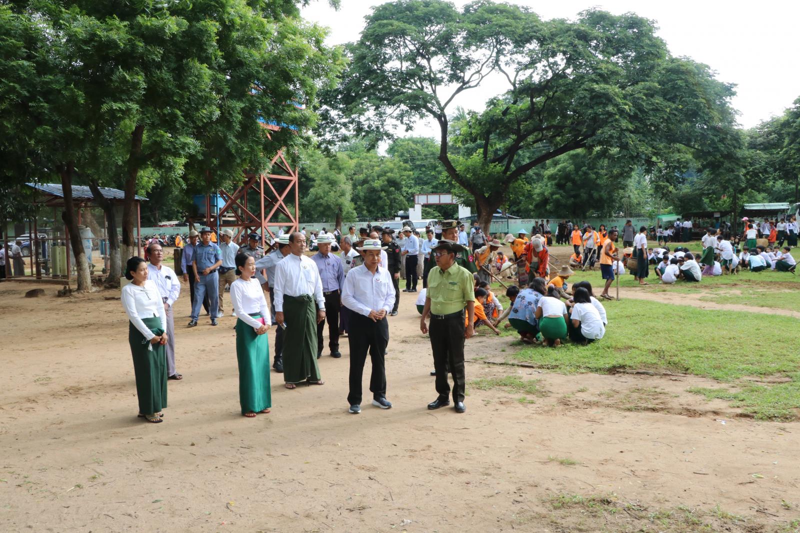 အလားတူ စစ်ကိုင်းတိုင်းဒေသကြီးအတွင်းရှိ နာဂကိုယ်ပိုင်အုပ်ခွင့်ရဒေသနှင့် ခရိုင် ၁၃ ခရိုင်တွင် တပ်မတော်သားများ၊ မြန်မာနိုင်ငံရဲတပ်ဖွဲ့ဝင်များ၊ မီးသတ်တပ်ဖွဲ့ဝင်များ၊ ဌာနဆိုင်ရာဝန်ထမ်းများနှင့် စည်ပင်သာယာရေးအဖွဲ့များ စုစုပေါင်းအင်အား ၁၀၀၀ ဦး ကျော်ဖြင့် အခြေခံပညာကျောင်းများ၌ စုပေါင်းသန့်ရှင်းရေးလုပ်ငန်းများ ဆောင်ရွက်ခဲ့ကြသည်။
