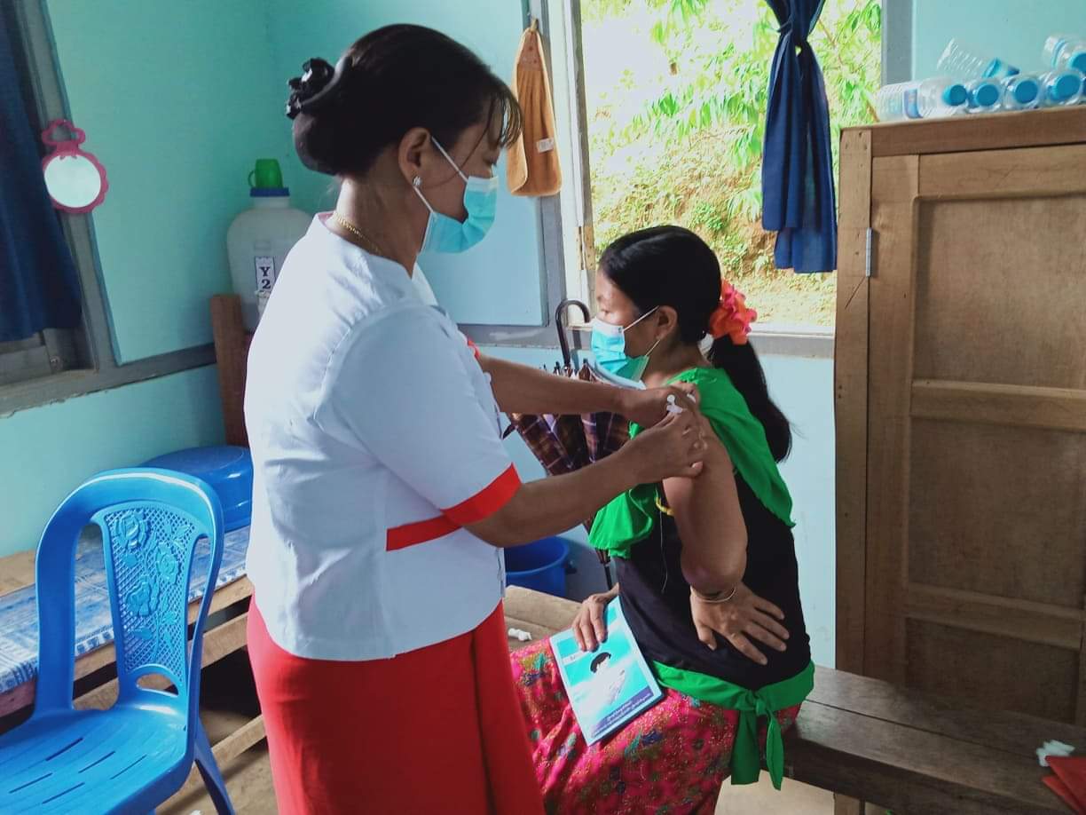 ထိုသို့ ကာကွယ်ဆေးထိုးနှံရာတွင် ကိုယ်ဝန်ဆောင်မိခင်များကို မေးခိုင်ကာကွယ်ဆေးအားလည်းကောင်း အသက်တစ်နှစ် ကလေးသူငယ်များကို ပုံမှန်ကာကွယ်ဆေးအားလည်းကောင်း ထိုးနှံတိုက်ကျွေးကြပြီး မြို့ပေါ် (၄)ရပ်ကွက်နှင့် အခြေစိုက် တပ်ရင်းအပါအဝင် ရပ်ကွက်(၅)ရပ်ကွက်ရှိ ကိုယ်ဝန်ဆောင်မိခင်နှင့် အသက် တစ်နှစ်အောက်ကလေးသူငယ်များကို ထိုးနှံပေးနေခဲ့ကြောင်း တာဝန်ရှိဆရာမတစ်ဦးထံမှ သိရသည်။