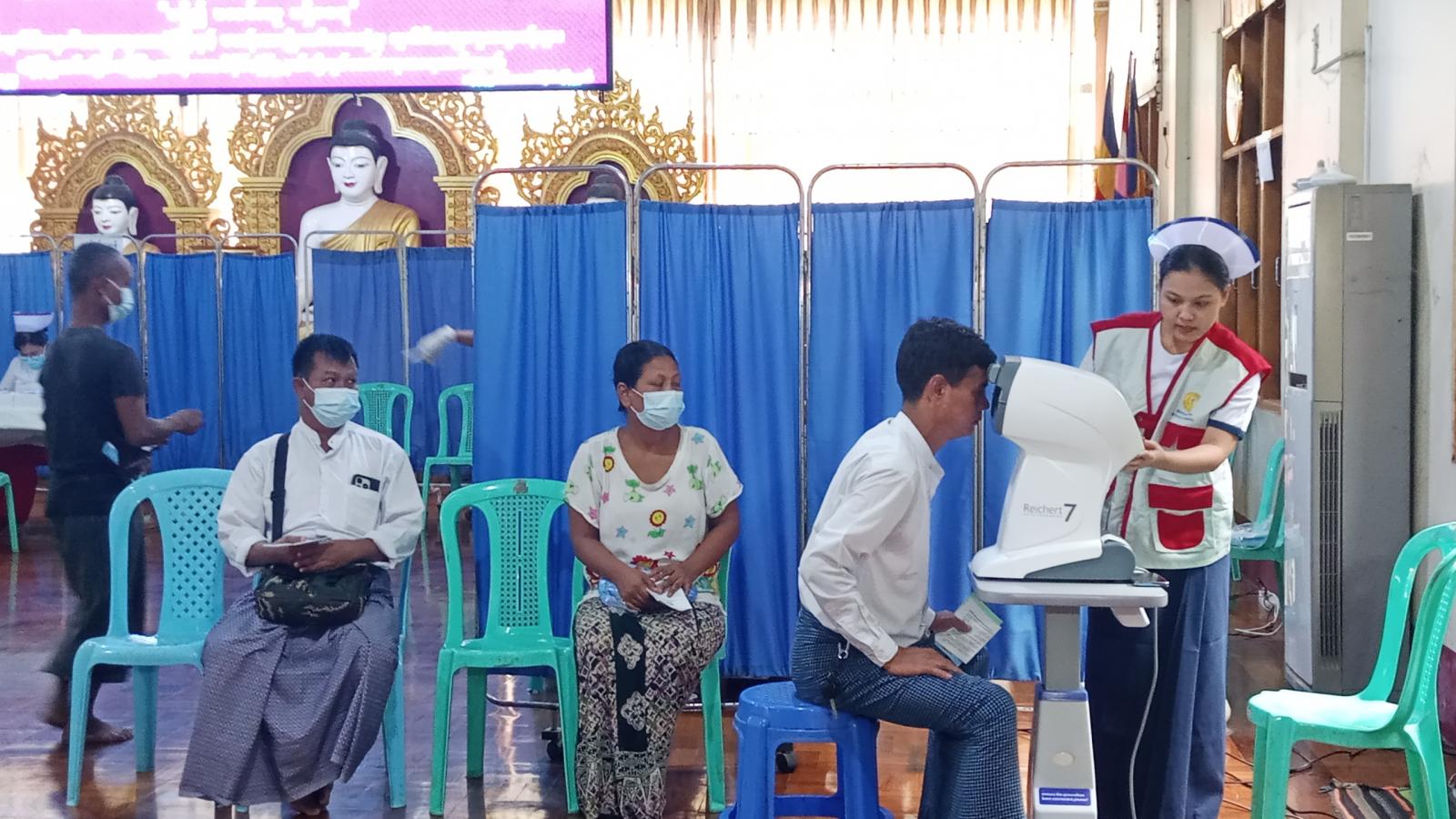 ရန်ကုန်တိုင်းဒေသကြီး၊ ဒဂုံမြို့သစ်ခရိုင်၊ ဒဂုံမြို့သစ်(တောင်ပိုင်း)မြို့နယ်တွင် ရန်ကုန်တိုင်းဒေသကြီး မိခင်နှင့်ကလေးစောင့်ရှောက်မှုကြီးကြပ်ရေးအဖွဲ့နှင့် ရန်ကုန်တိုင်းဒေသကြီးကုသရေးနှင့် ပြည်သူ့ကျန်းမာရေးဦးစီးဌာနတို့ ပူးပေါင်းဆောင်ရွက်သည့် “မရှိ၍ မလင်းသူ မရှိစေရ” အစီအစဉ်ဖြင့် မျက်စိအခမဲ့စမ်းသပ်စစ်ဆေးကုသမှုပေးခြင်း၊ မျက်မှန်များ အခမဲ့တပ်ဆင်ပေးခြင်းနှင့်မျက်စဉ်းခပ်ကုသပေးခြင်းတို့ကို (၂၀)ရပ်ကွက်၊ မြို့နယ်ကျက်သရေဆောင် အောင်ဗောဓိစေတီတော်မြတ်ကြီးဓမ္မာရုံ၌ ယမန်နေ့နံနက် ၇ နာရီ ၃၀ မိနစ်က ဆောင်ရွက်ကြကြောင်း သိရသည်။
