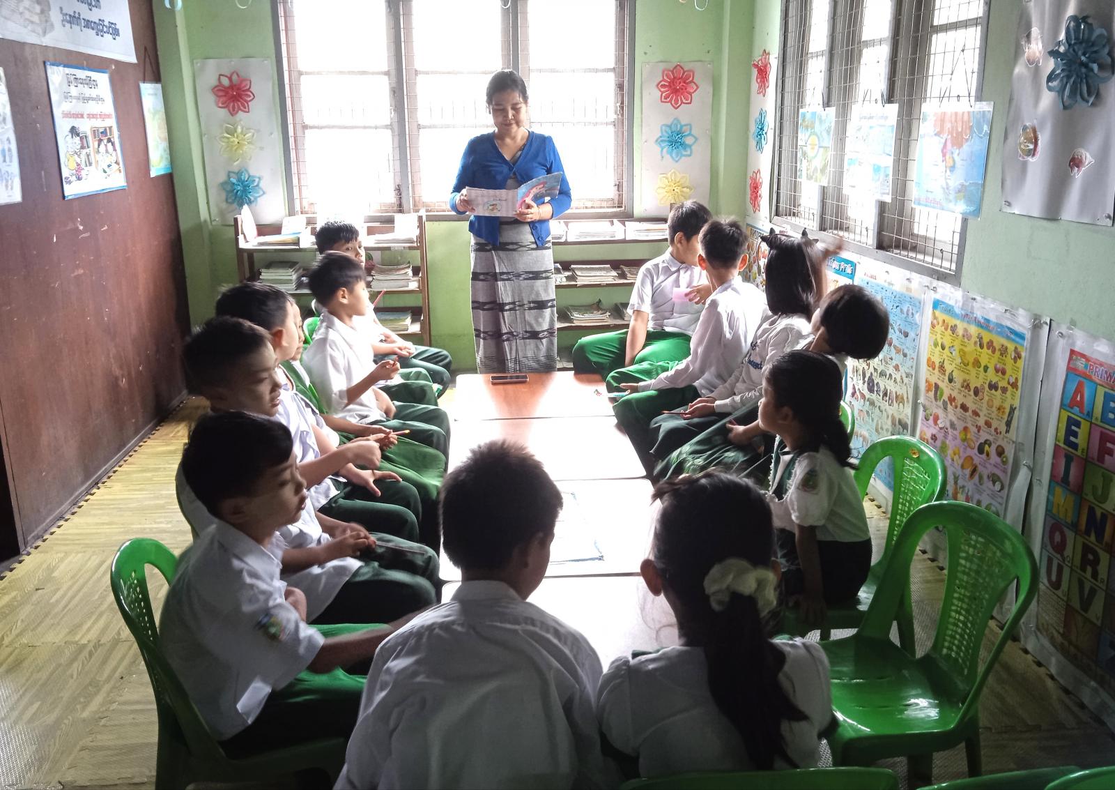 ထို့သို့ဆောင်ရွက်ရာတွင် ပြန်ကြားရေးနှင့်ပြည်သူ့ဆက်ဆံရေးဦးစီးဌာနမှ ဒုတိယဦးစီးမှူး ဒေါ်သန္တာမြင့်မြင့်ကျော်က ကျောင်းသား၊ ကျောင်းသူများ အကျင့်စာရိတ္တကောင်းမွန်စေရန်၊ စာကြည့်တိုက်နှင့်ရင်းနှီးမှုရှိစေရန် စာကြည့်တိုက်မှ အသိပညာဗဟုသုတများရရှိစေရန်ရည်ရွယ်၍ ပြုလုပ်ရခြင်းဖြစ်ကြောင်းပြောကြားပြီး ကျောင်းသား၊ ကျောင်းသူများအား ဒေါက်တာမေမွန်ရေးသားပြုစုသည့် ကြယ်တွေကောက်ဖို့သွားကြစို့ ပုံပြင်နှင့် ရွှေမြိုင်ပြုံးလဲ့မော်ရေးသားသည့် မီးမီးလေးရဲ့ကျောင်းကဗျာအား ဖတ်ရှုပြောပြခဲ့သည်။
