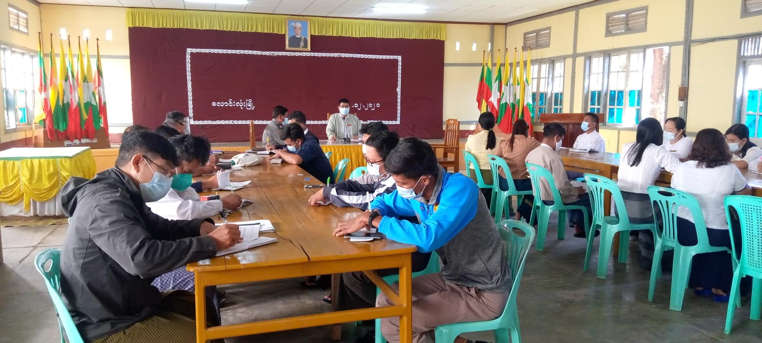 ထို့နောက် တက်ရောက်လာသည့် မြို့နယ်ဌာနဆိုင်ရာများမှ တာဝန်ရှိသူများက (၇၃)နှစ်မြောက် လွတ်လပ်ရေးနေ့ အခမ်းအနား ကျင်းပပြုလုပ်မည့် နေရာ ရွေးချယ်ခြင်း၊ ရောင်စုံမီးတပ်ဆင်ထွန်းညှိခြင်းများနှင့် ကိုဗစ်-၁၉ ရောဂါ ကာကွယ်ရေးဆိုင်ရာ လမ်းညွှန်ချက်များနှင့် အညီဆောင်ရွက်သွားမည့် အခြေအနေများကို သက်ဆိုင်ရာကဏ္ဍအလိုက် တင်ပြဆွေးနွေးခဲ့ကြပြီး အခမ်းအနားကို မြို့နယ်အထွေထွေအုပ်ချုပ်ရေးဦးစီးဌာနရုံးရှေ့ လွတ်လပ်ရေး ကျောက်တိုင်တွင် ကျင်းပပြုလုပ်သွားရန် ဆုံးဖြတ်ချက်ချခဲ့ပြီး လိုအပ်သည်များကို ပေါင်းစပ်ညှိနှိုင်းဆောင်ရွက်ခဲ့ကြောင်းနှင့် အဆိုပါ အစည်း အဝေးကို ကျန်းမာရေးနှင့် အားကစားဝန်ကြီးဌာနမှ ညွှန်ကြားချက်များနှင့်အညီ ကျင်းပဆောင်ရွက် ခဲ့ကြောင်း သိရသည်။