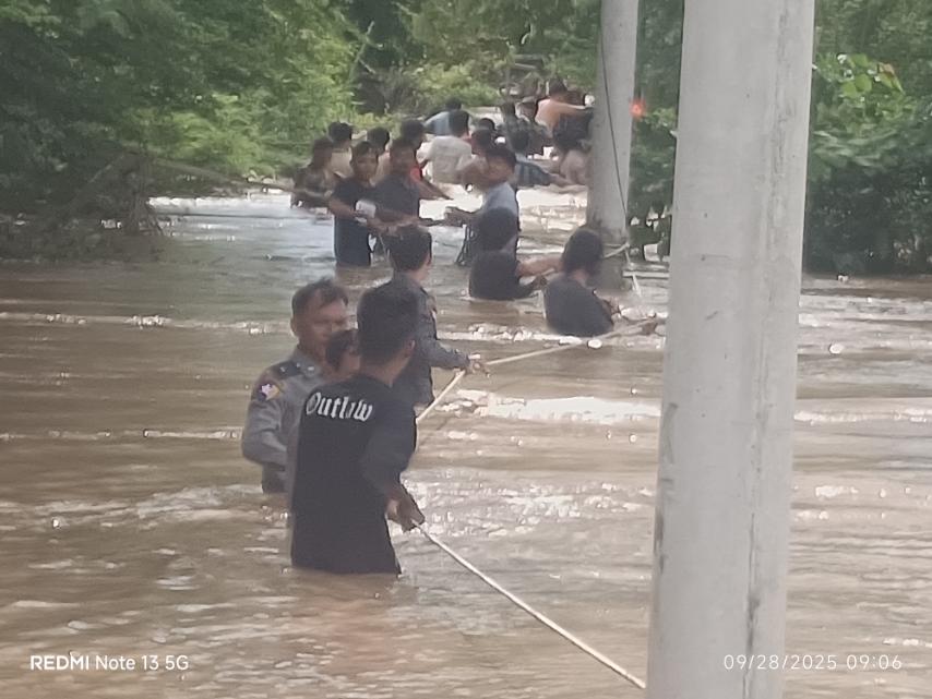 မကွေးတိုင်းဒေသကြီး၊ နတ်မောက်မြို့နယ်၌ ယနေ့နံနက် ၄ နာရီခန့်က မိုးသည်းထန်စွာ ရွာသွန်းမှုကြောင့် ချောင်းဘေးတစ်လျှောက်တွင် ရေကြီးရေလျှံမှုများဖြစ်ပေါ်၍ ဒေသခံပြည်သူများအား ရေဘေးလွတ်ရာသို့ လိုက်လံကူညီဆောင်ရွက်ပေးလျက်ရှိကြောင်း သိရသည်။