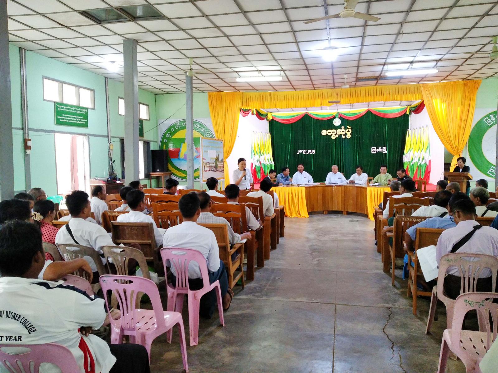 ရှေးဦးစွာ ကြံခင်းမြို့နယ် မြို့နယ်ရွေးကောက်ပွဲကော်မရှင်အဖွဲ့ခွဲဥက္ကဋ္ဌ ဦးလှိုင်ဝင်းက နှုတ်ခွန်းဆက်အမှာစကားပြောကြားပြီး အတွင်းရေးမှူးနှင့် အဖွဲ့ဝင်များက အသီးသီးမိတ်ဆက်စကားပြောကြားသည်။ ထို့နောက် မြို့နယ်ရွေးကောက်ပွဲအရာရှိ ဒေါ်ဝင်းဝင်းမြင့်က မဲစာရင်းများ ထုတ်ပြန်ကြေညာမည့် ရပ်ကွက်/ကျေးရွာအုပ်စုများရှိ ရပ်/ကျေးကော်မရှင်အဖွဲ့ခွဲများအား မဲဆန္ဒကြေညာခြင်း၊ စာရင်းပြုစုခြင်း၊ ရွေးကောက်ပွဲဆိုင်ရာ ကြေညာချက်များထုတ်ပြန်ခြင်း၊ မဲစာရင်းကြေညာပြီး ပြင်ဆင်ဖြည့်စွက်ရမည့်လုပ်ငန်းစဉ်များအား အကျယ်တဝင့် ရှင်းလင်းဆွေးနွေးပြောကြားသည်။